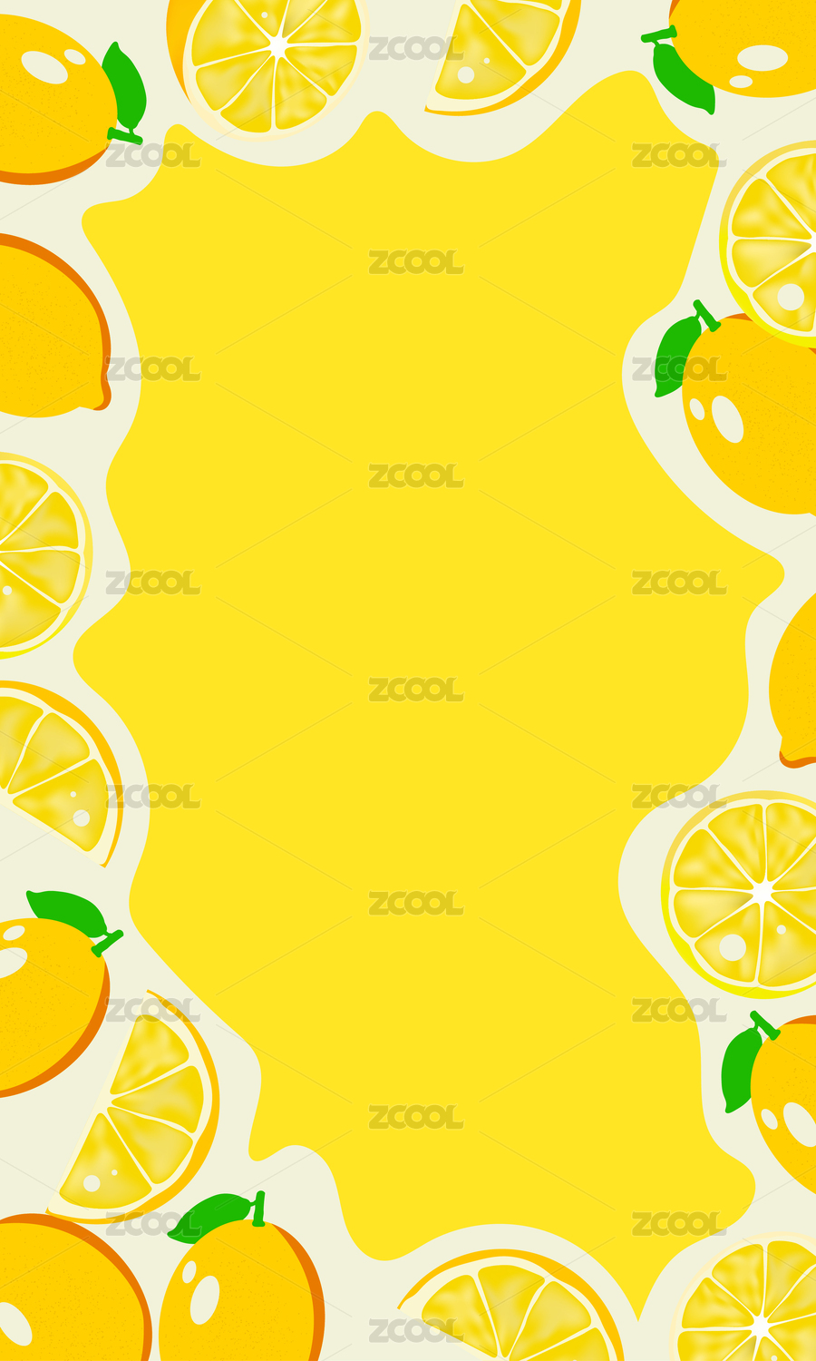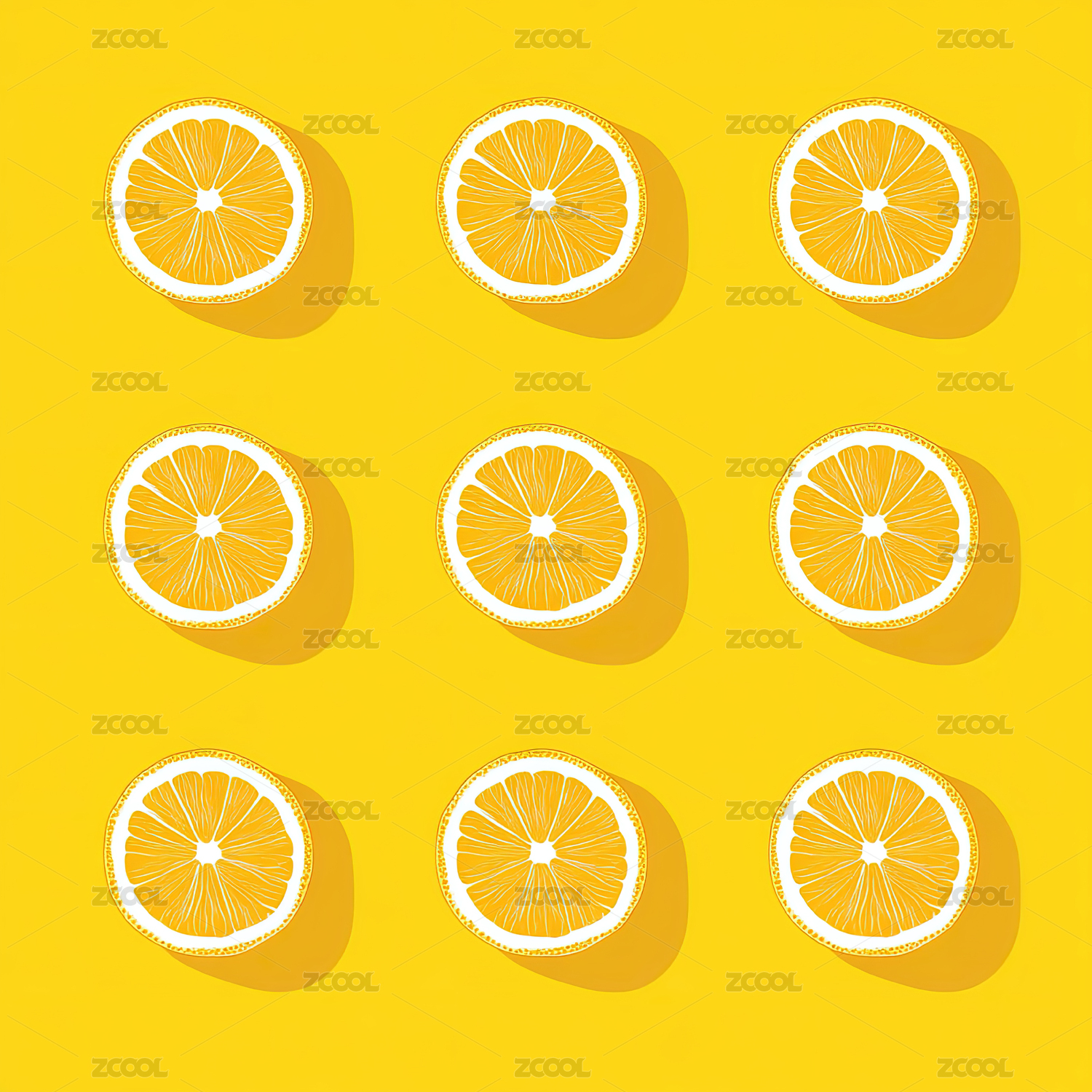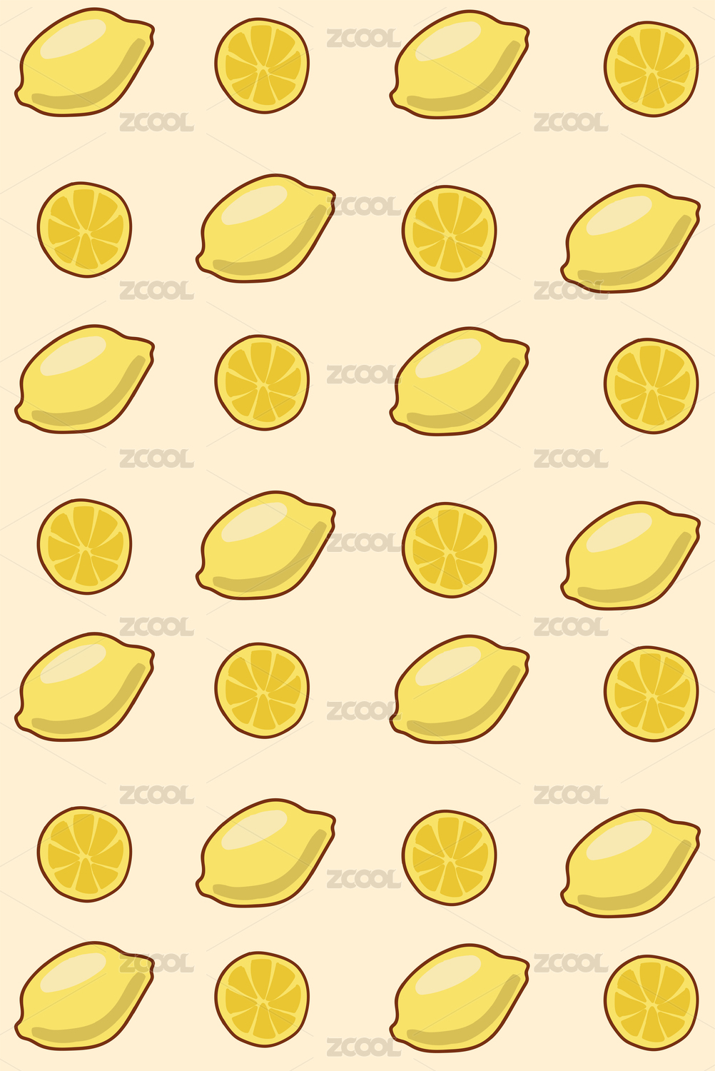 黄色底柠檬切片矢量插画无缝壁纸平铺背景