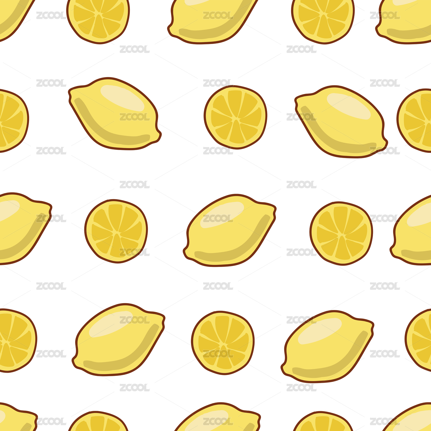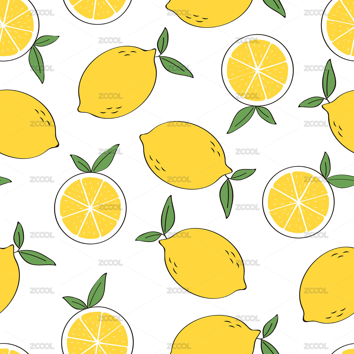 白底黄色柠檬矢量插画无缝壁纸平铺背景