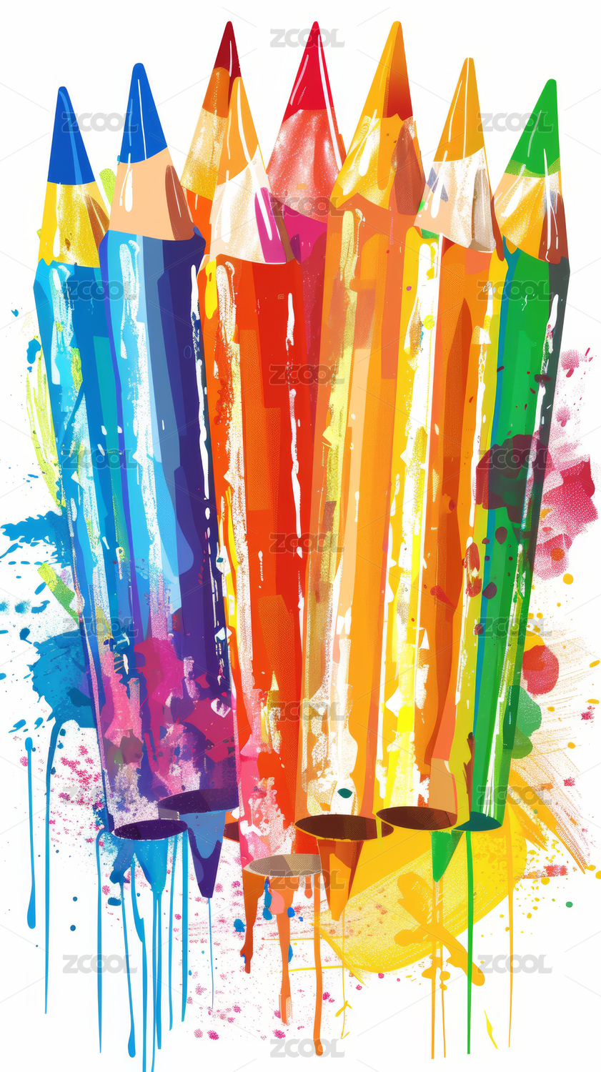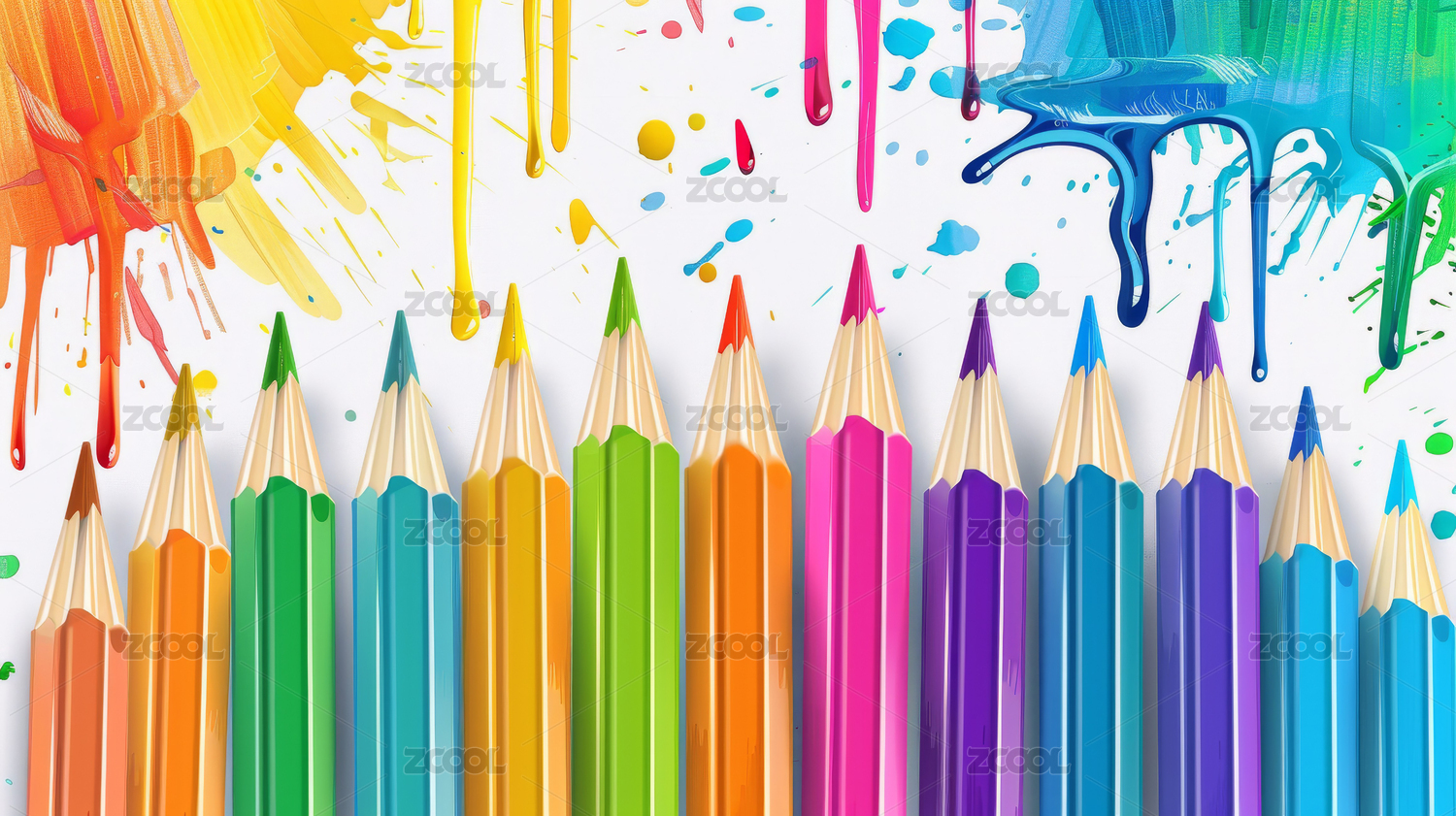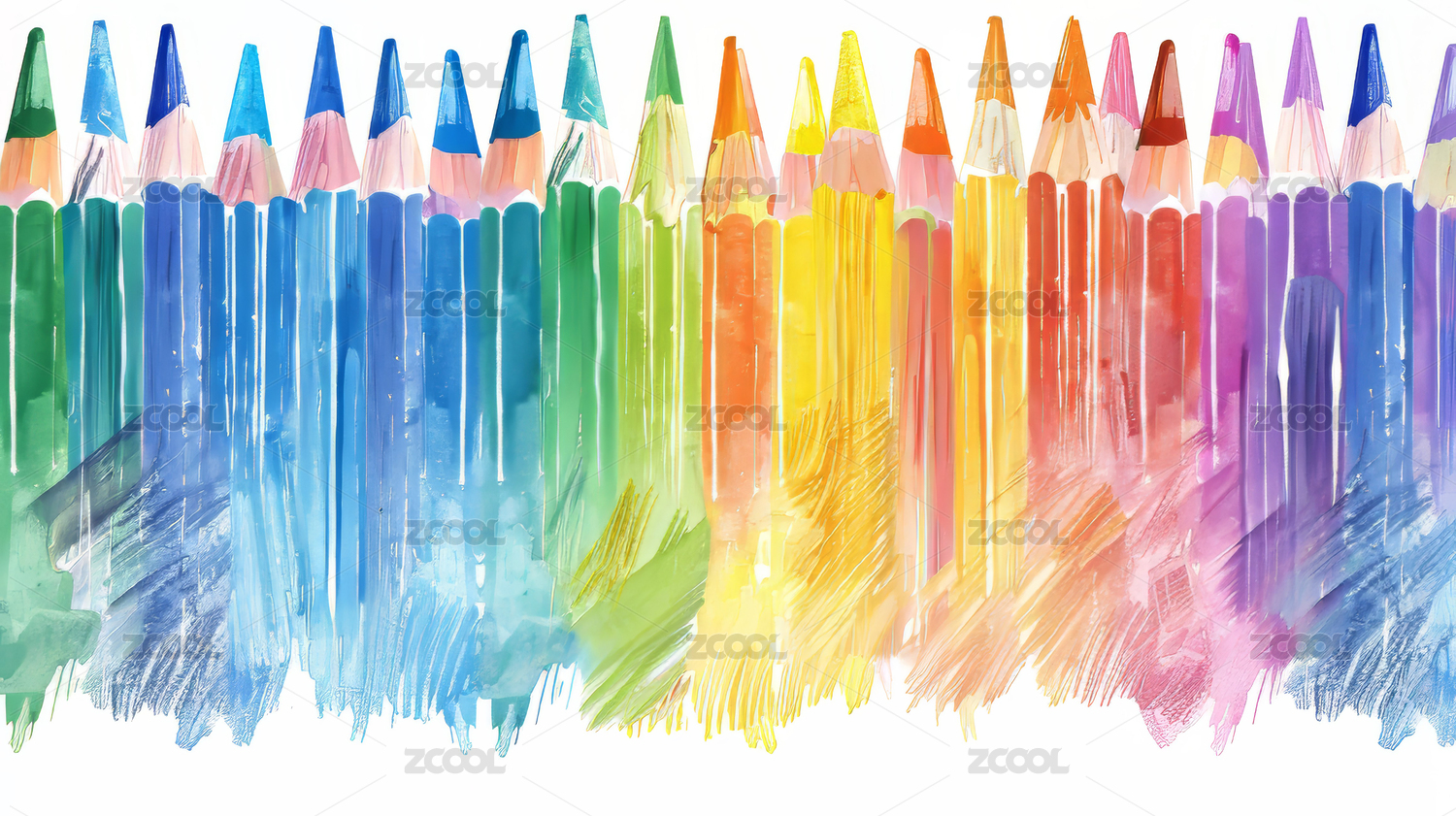AIGC202402,彩色,色彩,蜡笔,白色,笔触,铅笔,彩虹,画画,七彩