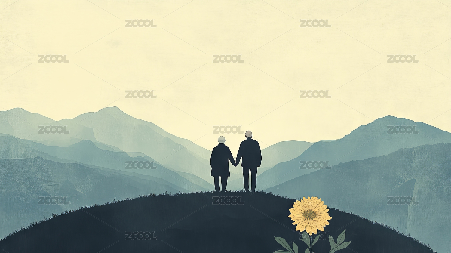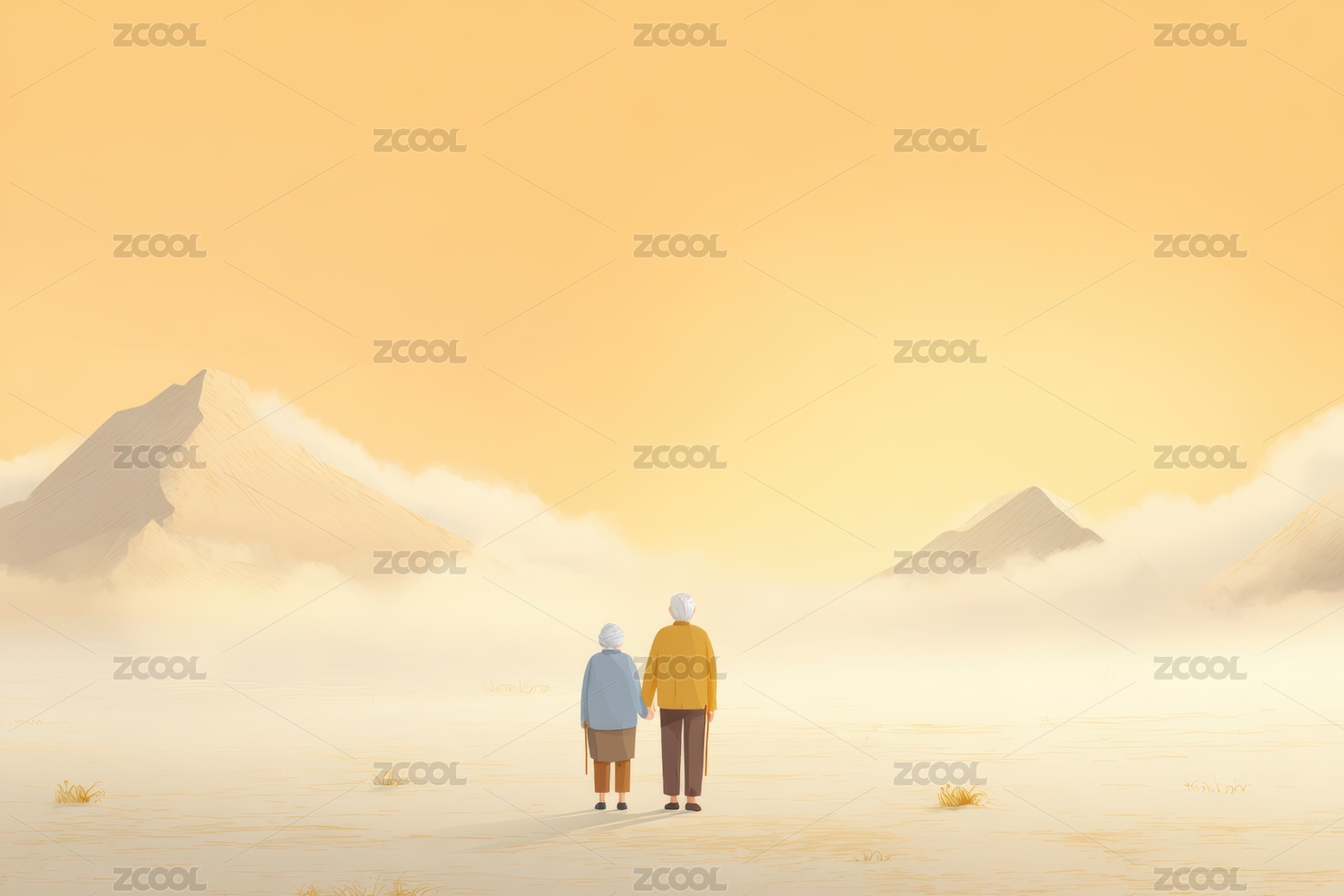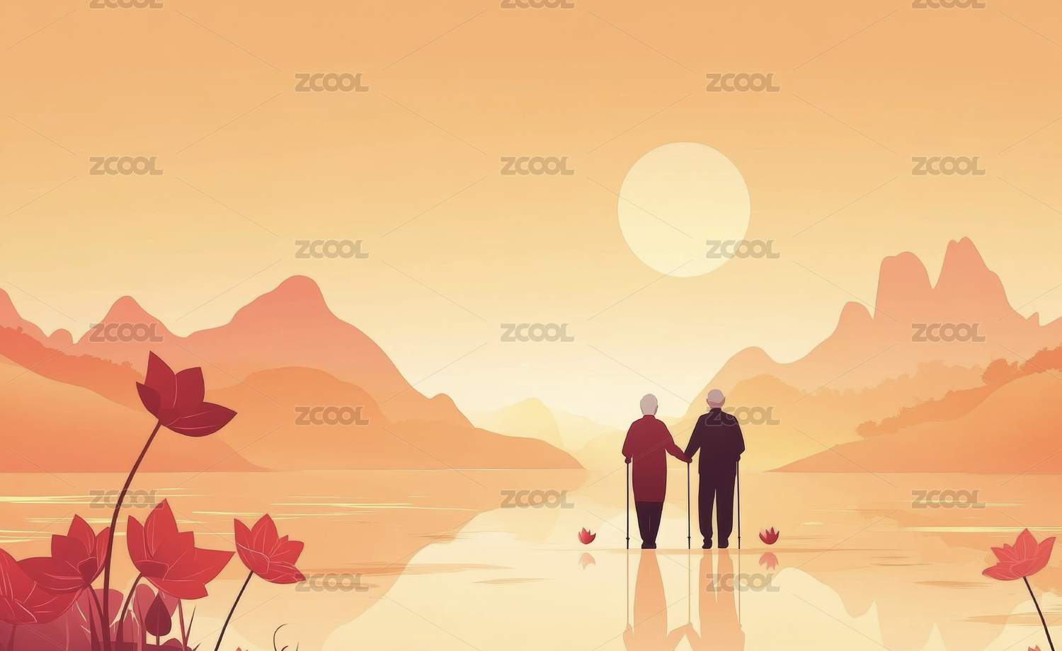 AIGC202406,背景,插图,插画,手绘,风景,重阳节,陪伴,老人,关怀
