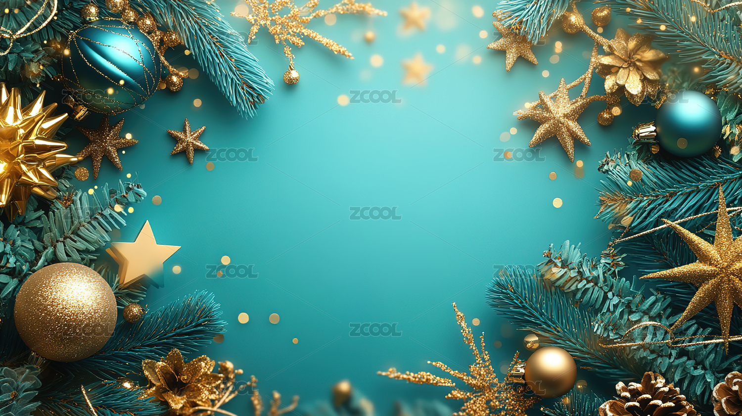 带有金色圣诞装饰的深绿色背景