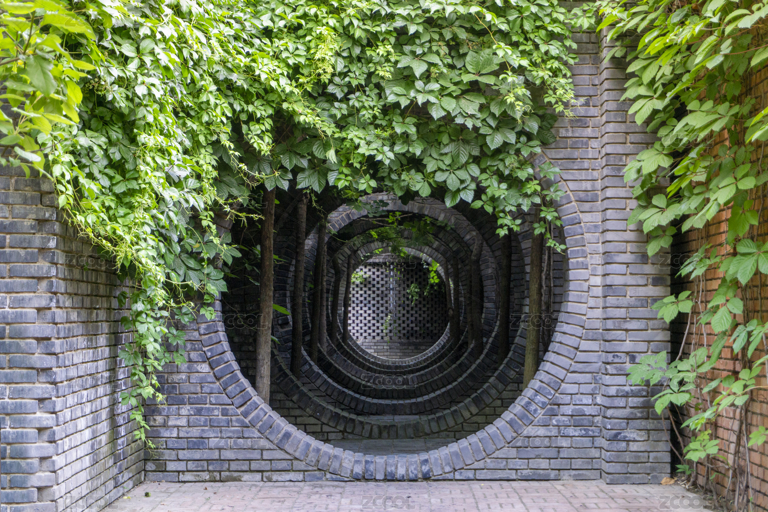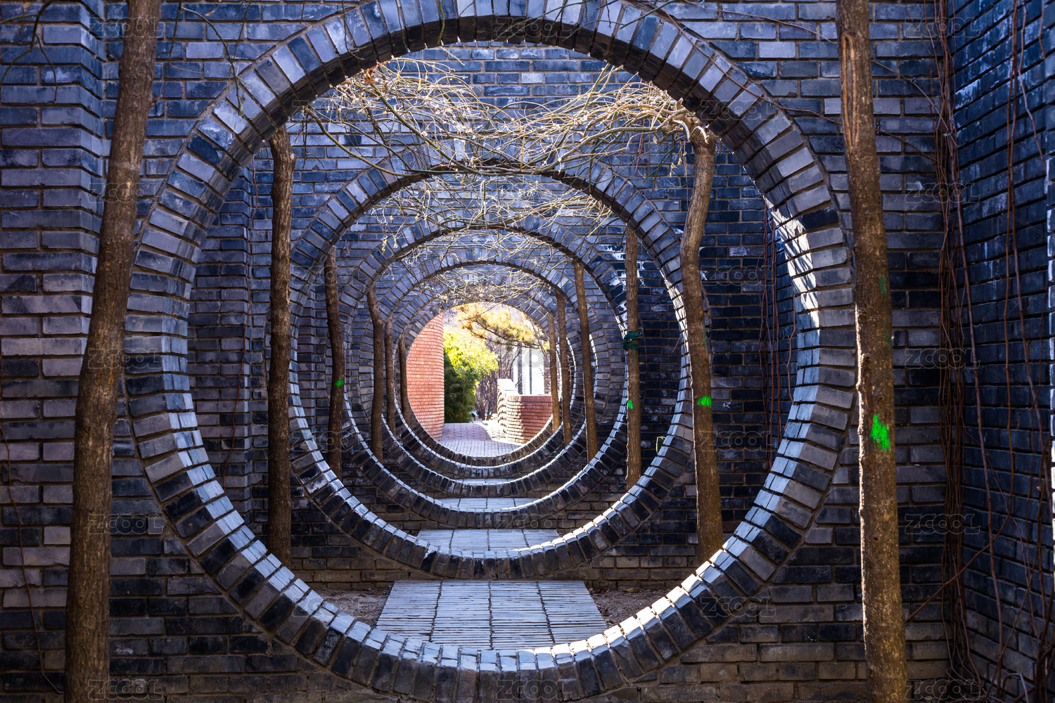圆形,建筑,户外,红砖美术馆,艺术,环境,走廊,砖墙,路,建筑外部