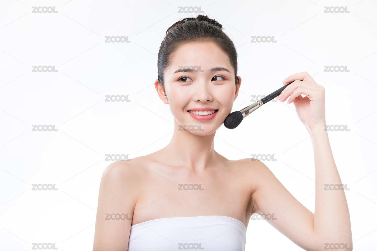 白色背景里正在化妆的亚洲美女