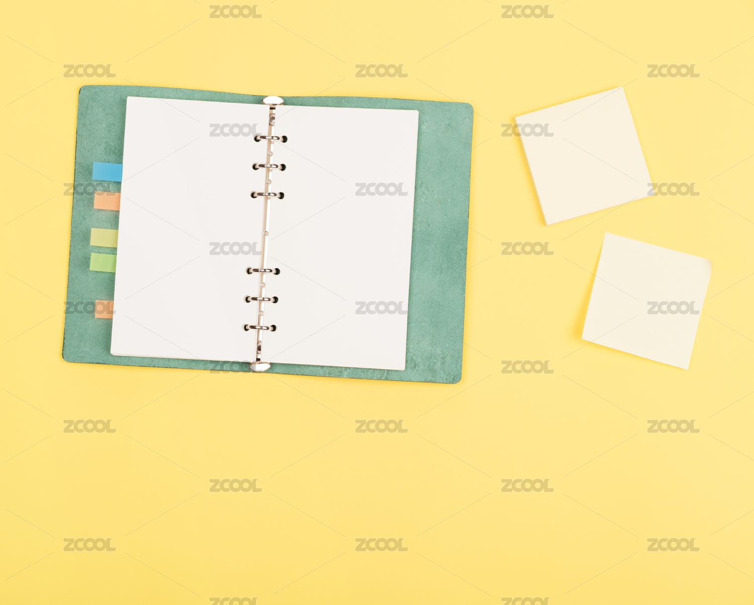 粉色的笔记本和彩色文件夹,蓝色背景留白