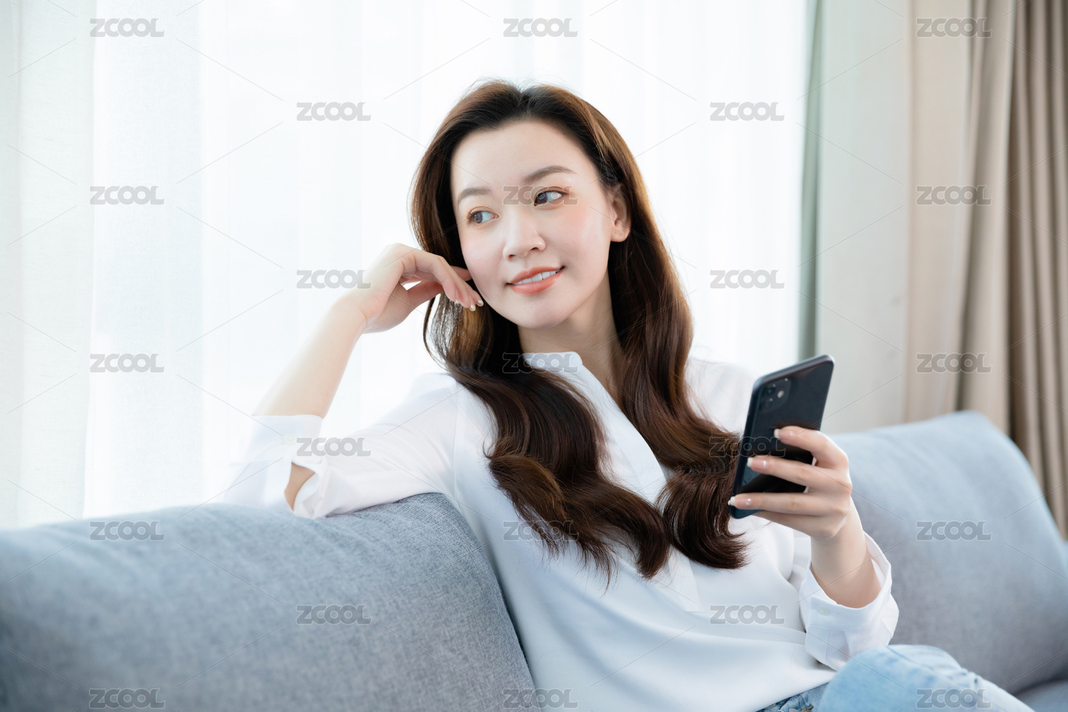 HEPP202111,美女,在家,自信,居家生活,生活方式,女性,长发,白衬衫,休闲