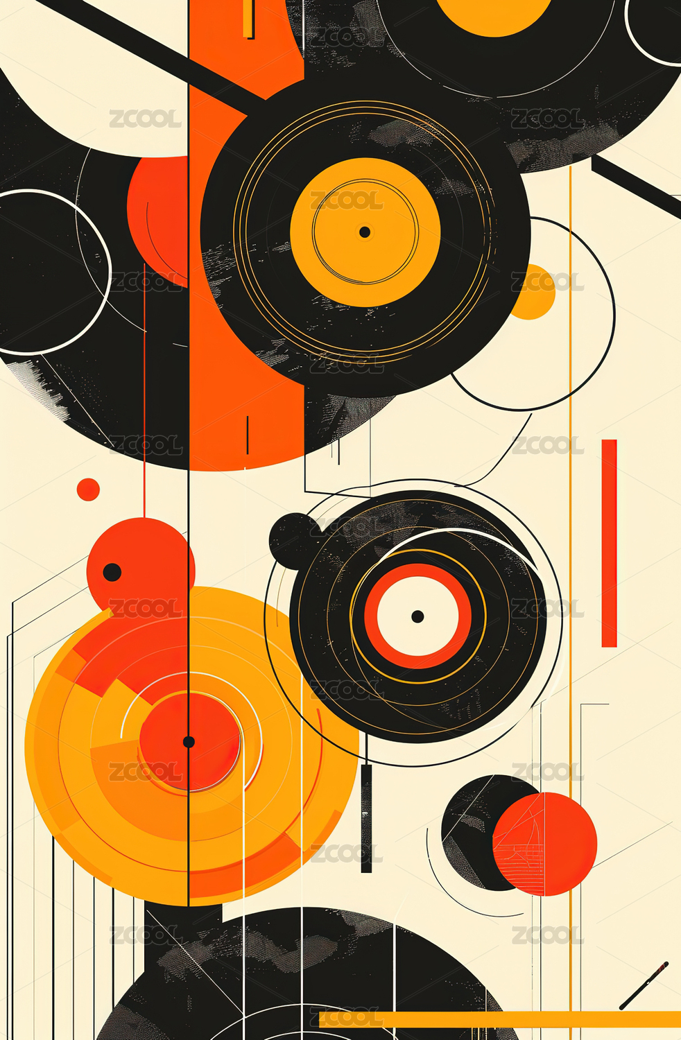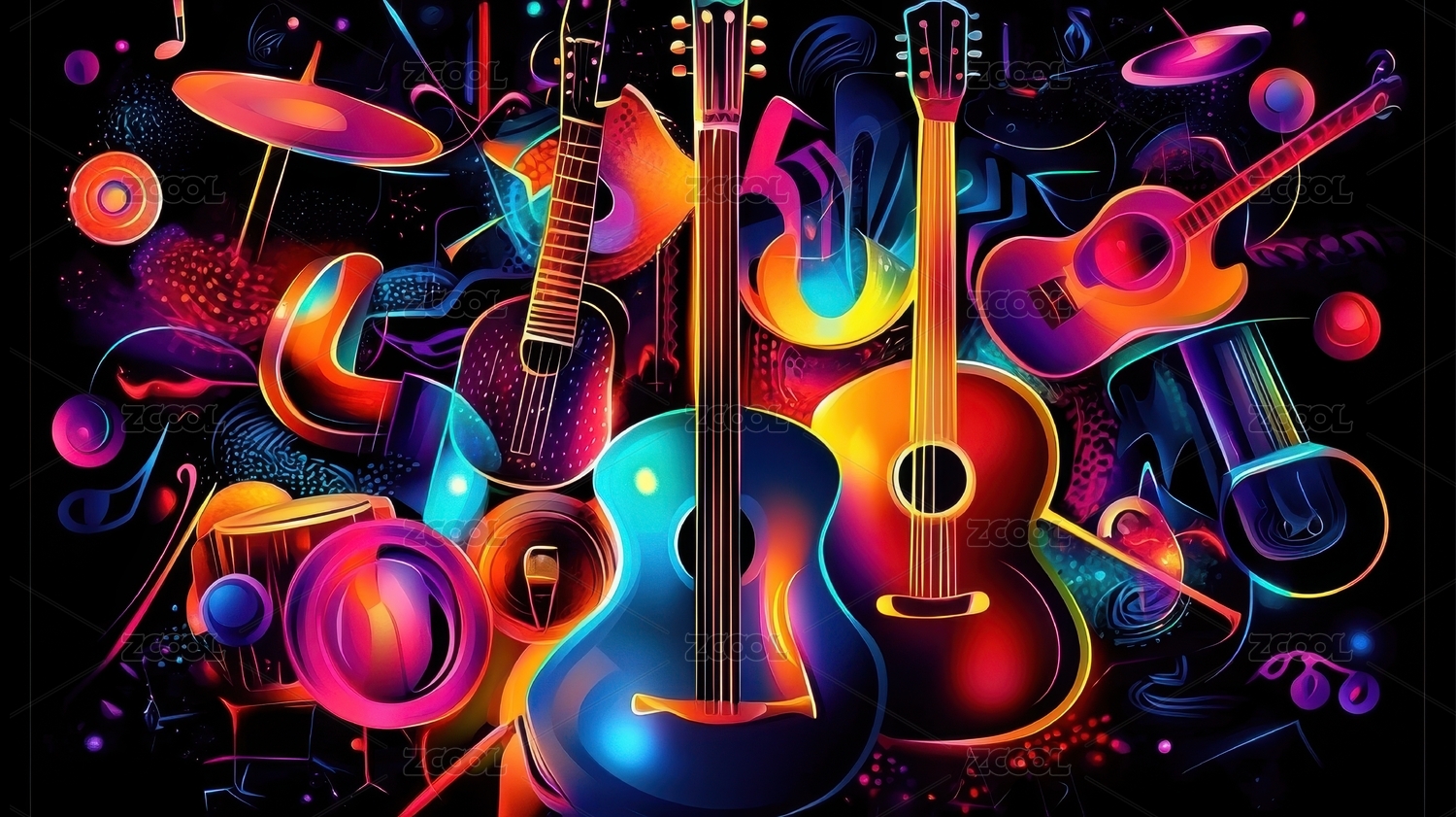 几何形状与吉他的融合艺术插画
