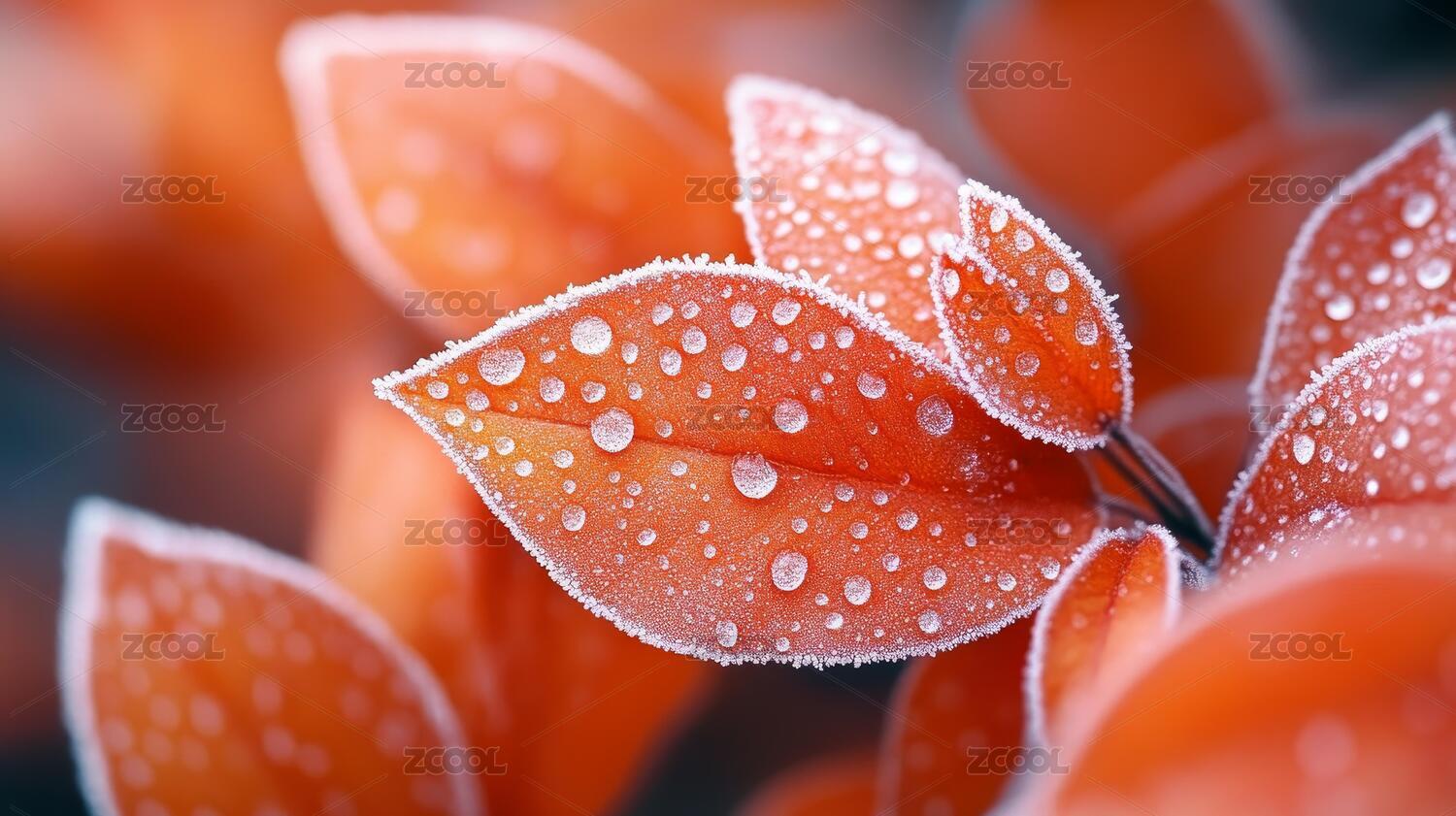 红叶水滴特写自然