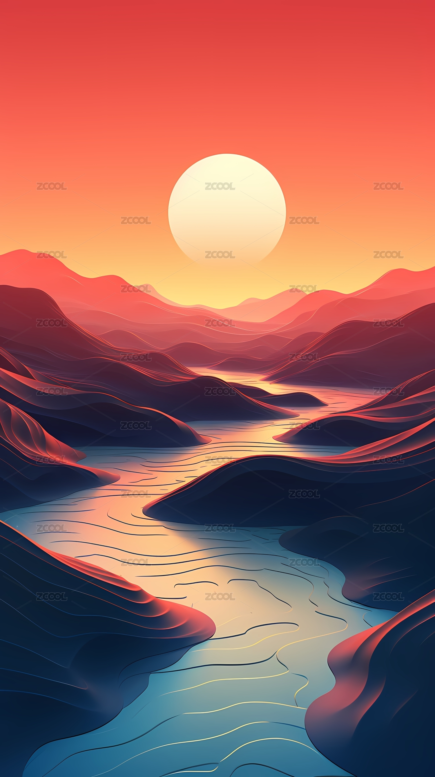 日出风景插画背景