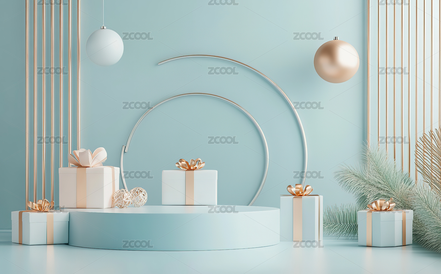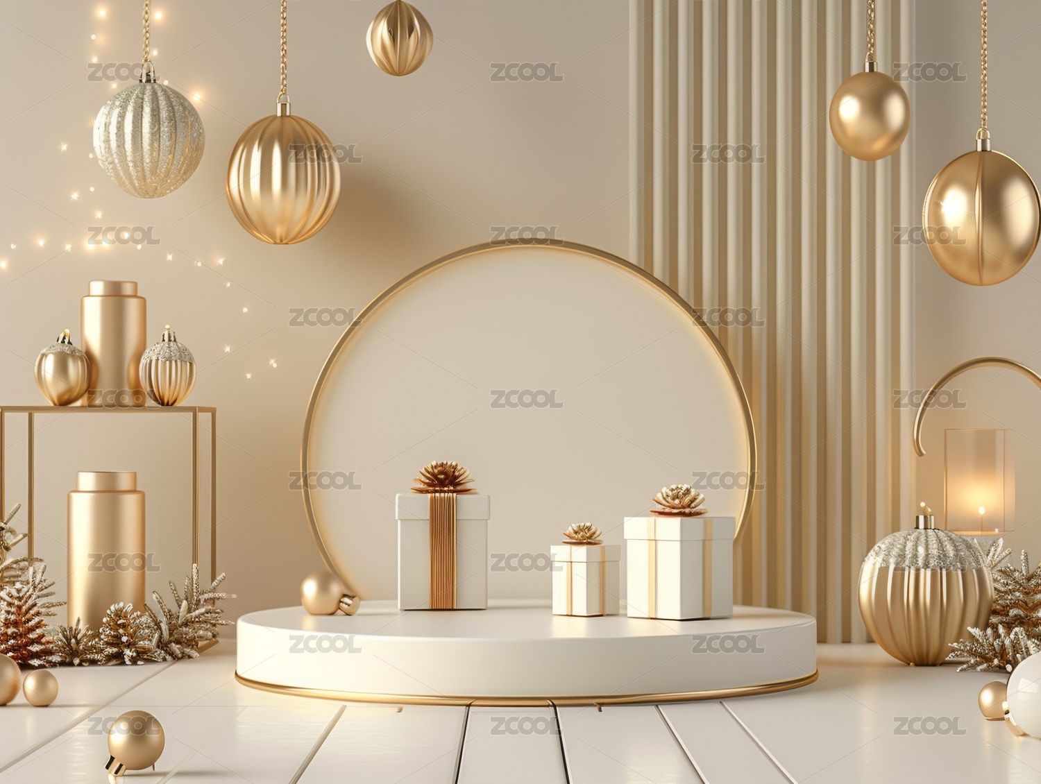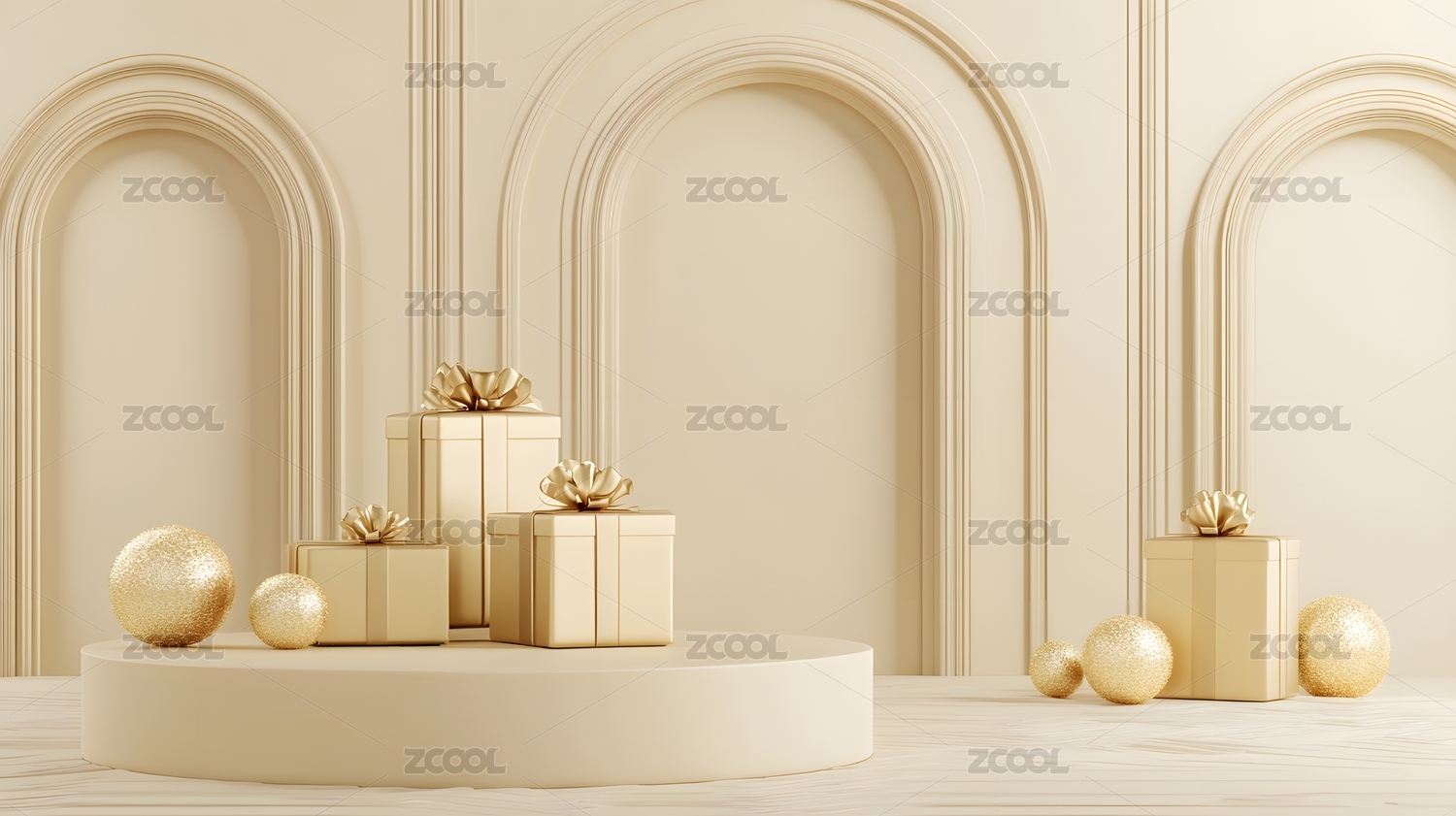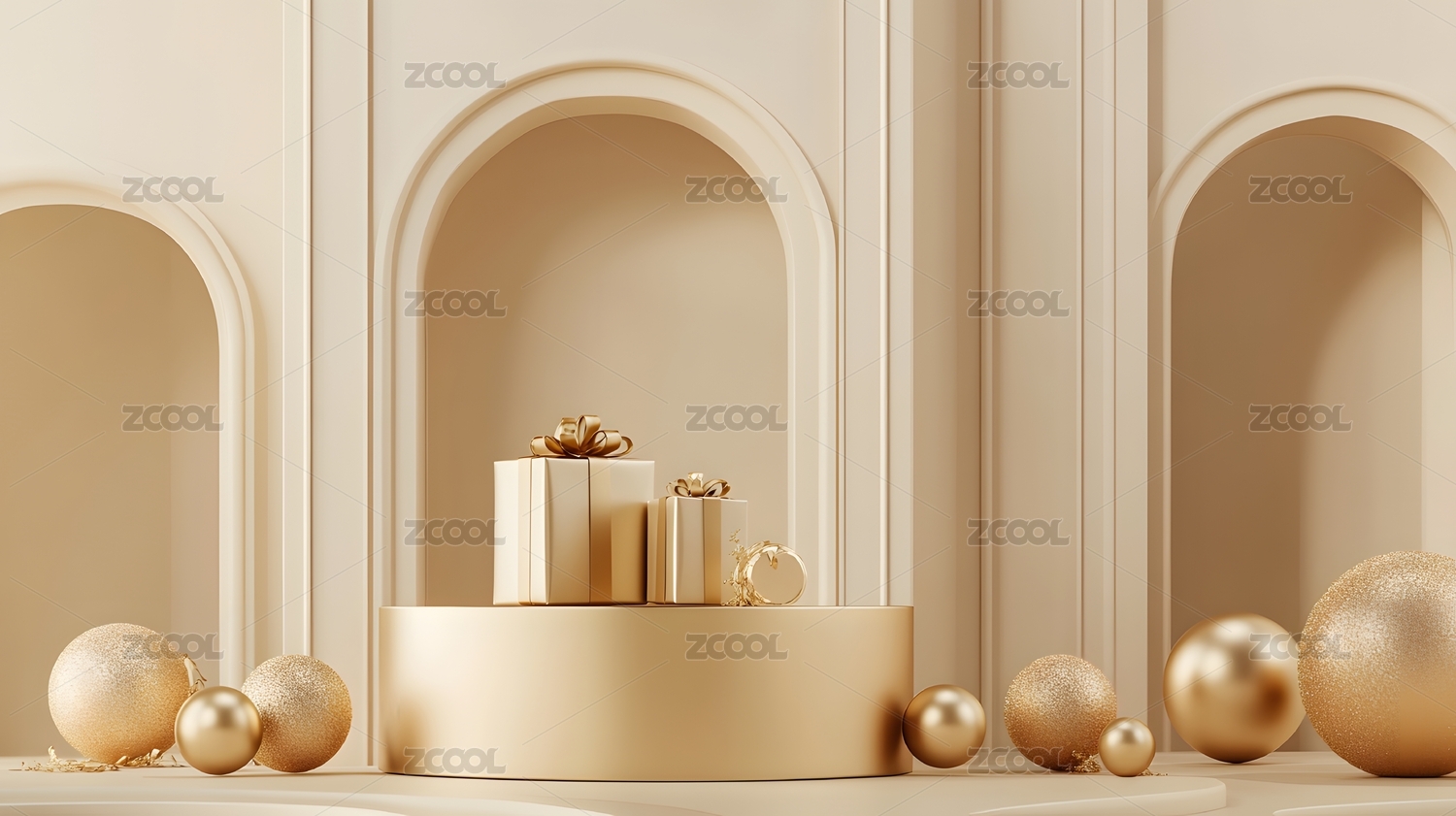 金色礼物展台3D渲染图