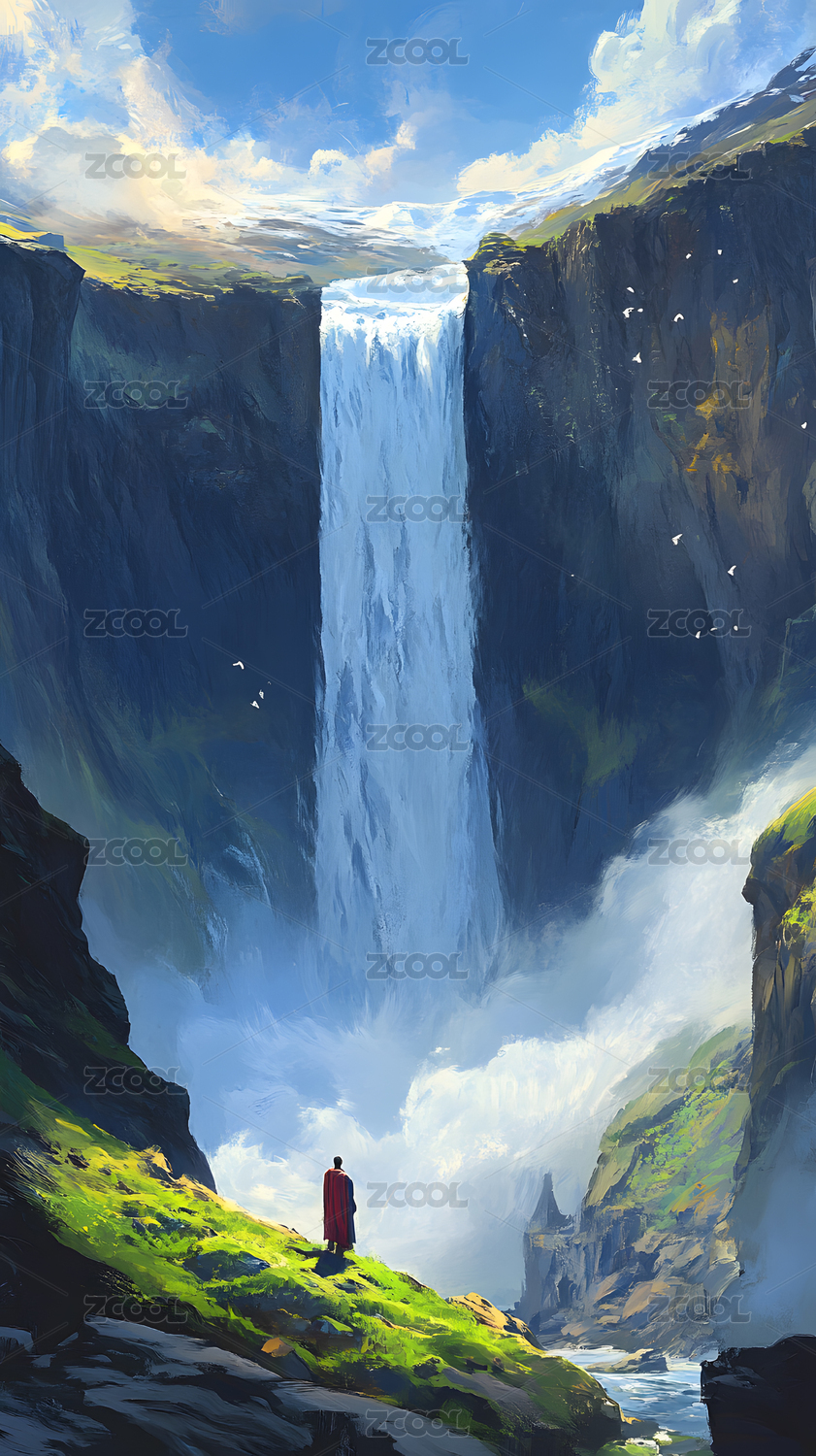 水墨山水高山流水画卷少侠道长山峰舞剑