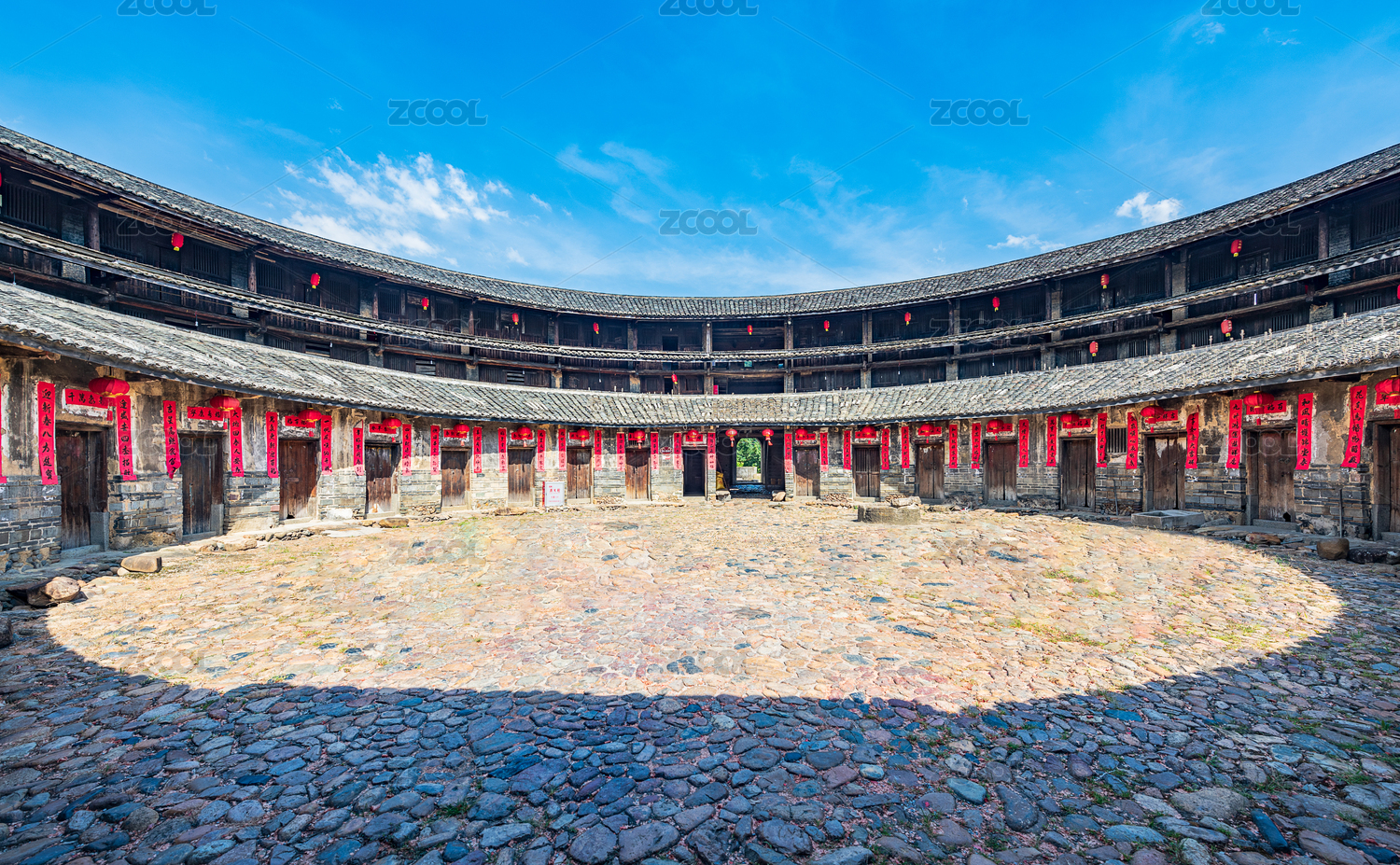 花萼楼,广东,梅州,大埔县,土楼,瓦,蓝色,红色,暮光,暮色
