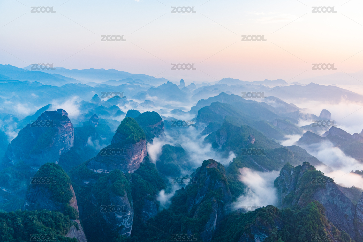 广西桂林资源县八角寨日出时的云海