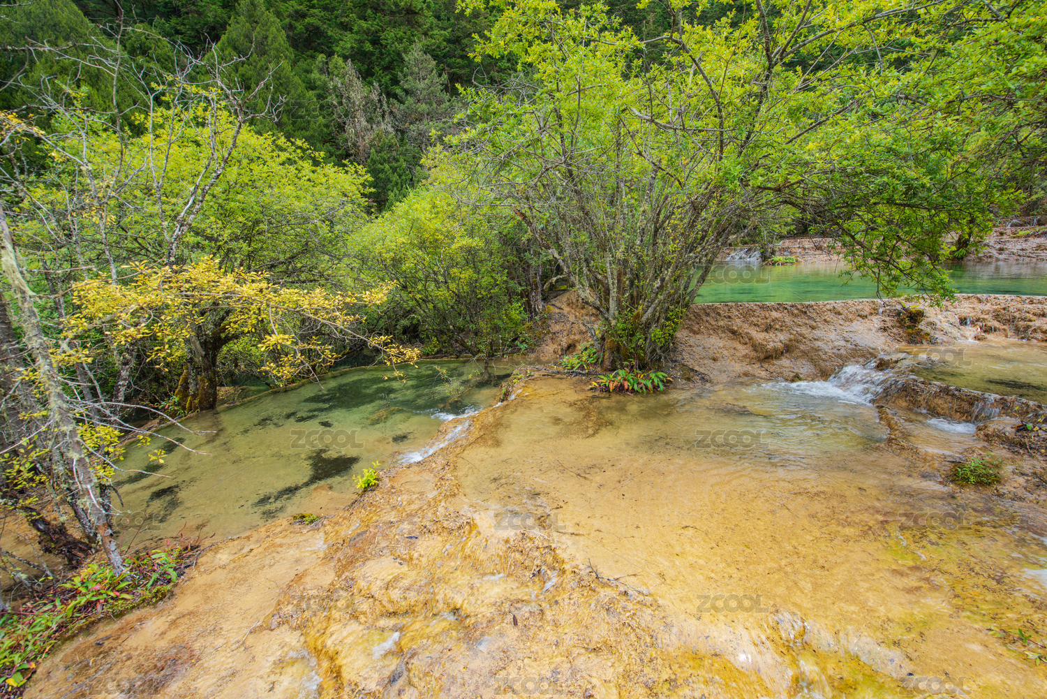 四川黄龙彩池与云杉