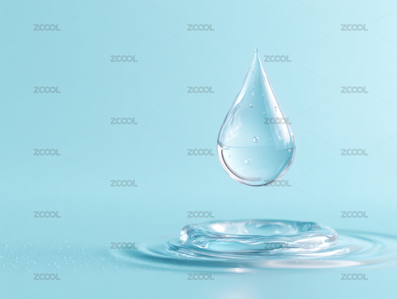 蓝色透明水滴浅蓝背景