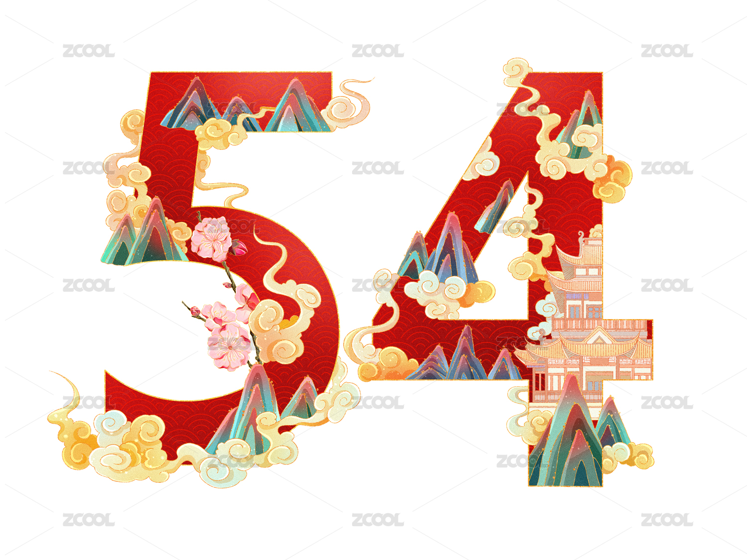 红蓝色剪纸十一国庆黄菊森林植物祥云组合