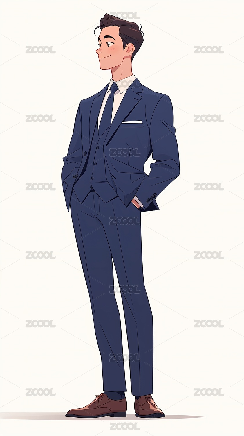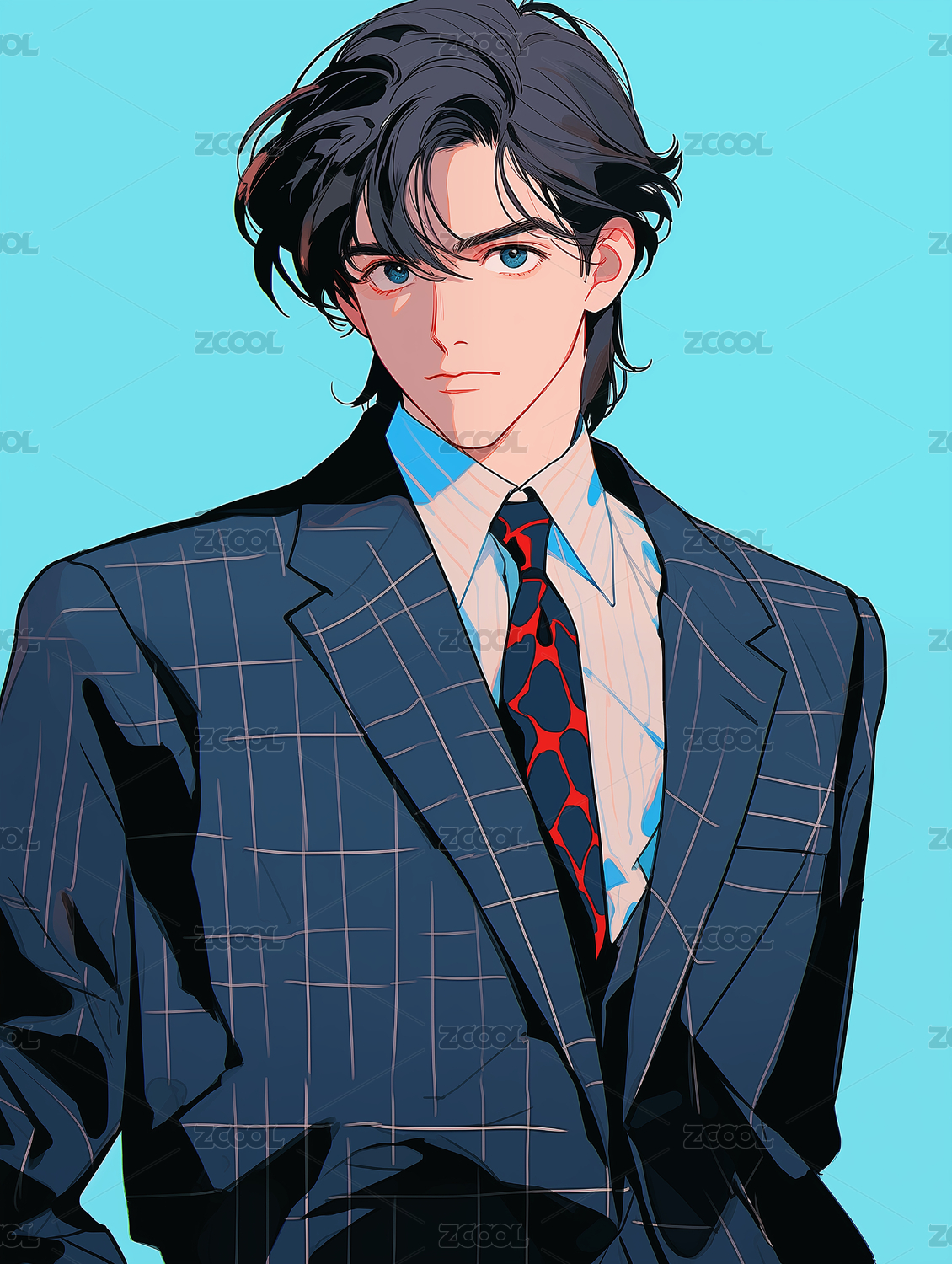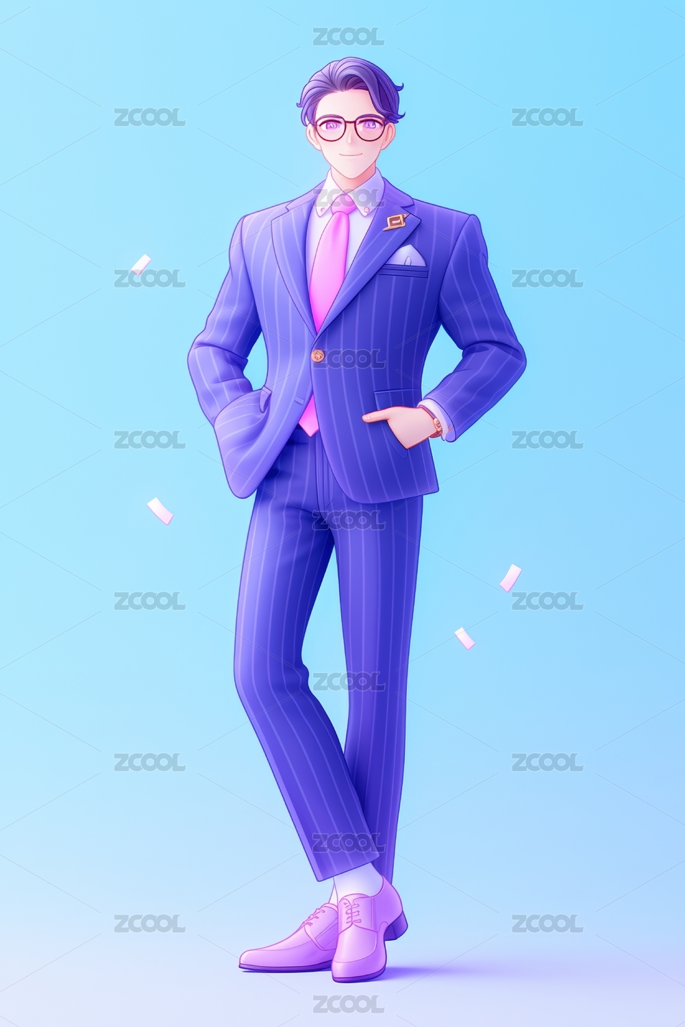 眼镜,蓝色,卡通,背景,人物,3D,优雅,动漫,时尚,西装