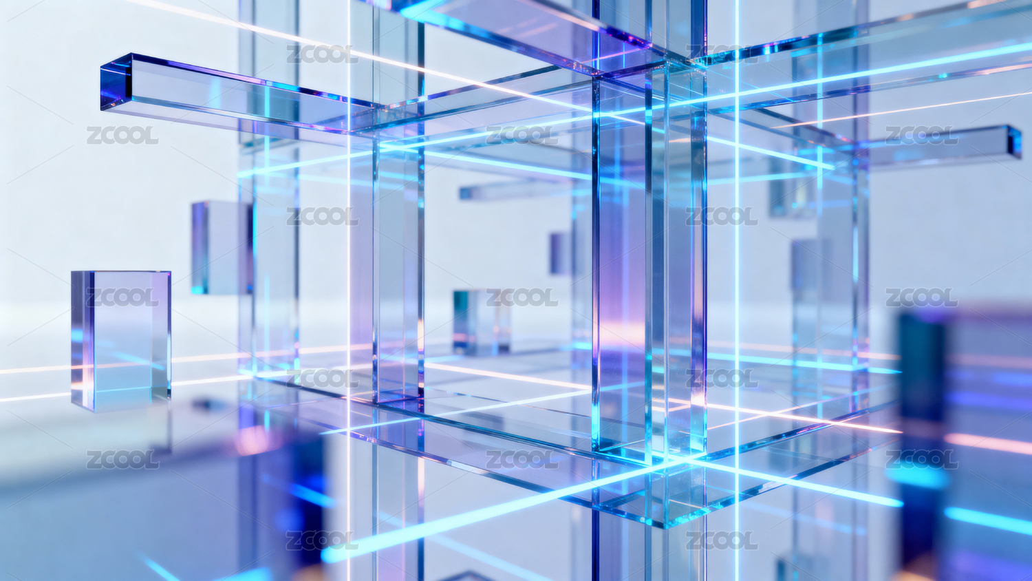 科技感抽象密集排列透明晶体圆柱体圆柱背景