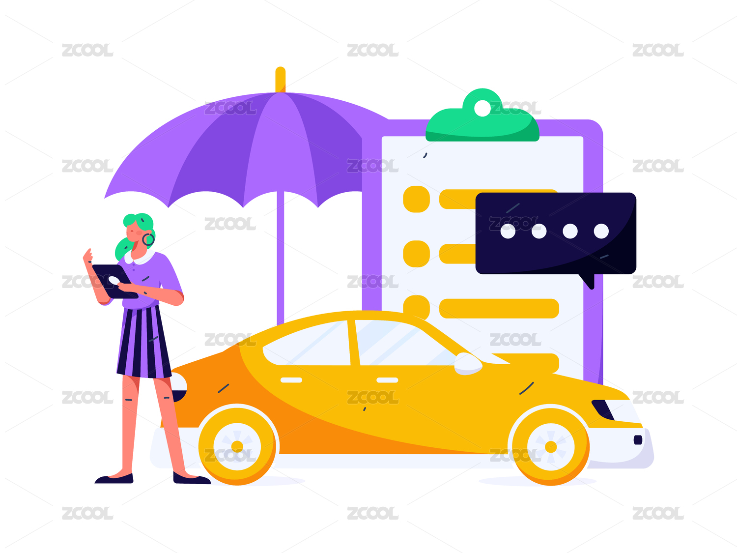 为汽车购买保险扁平人物矢量概念运营手绘插