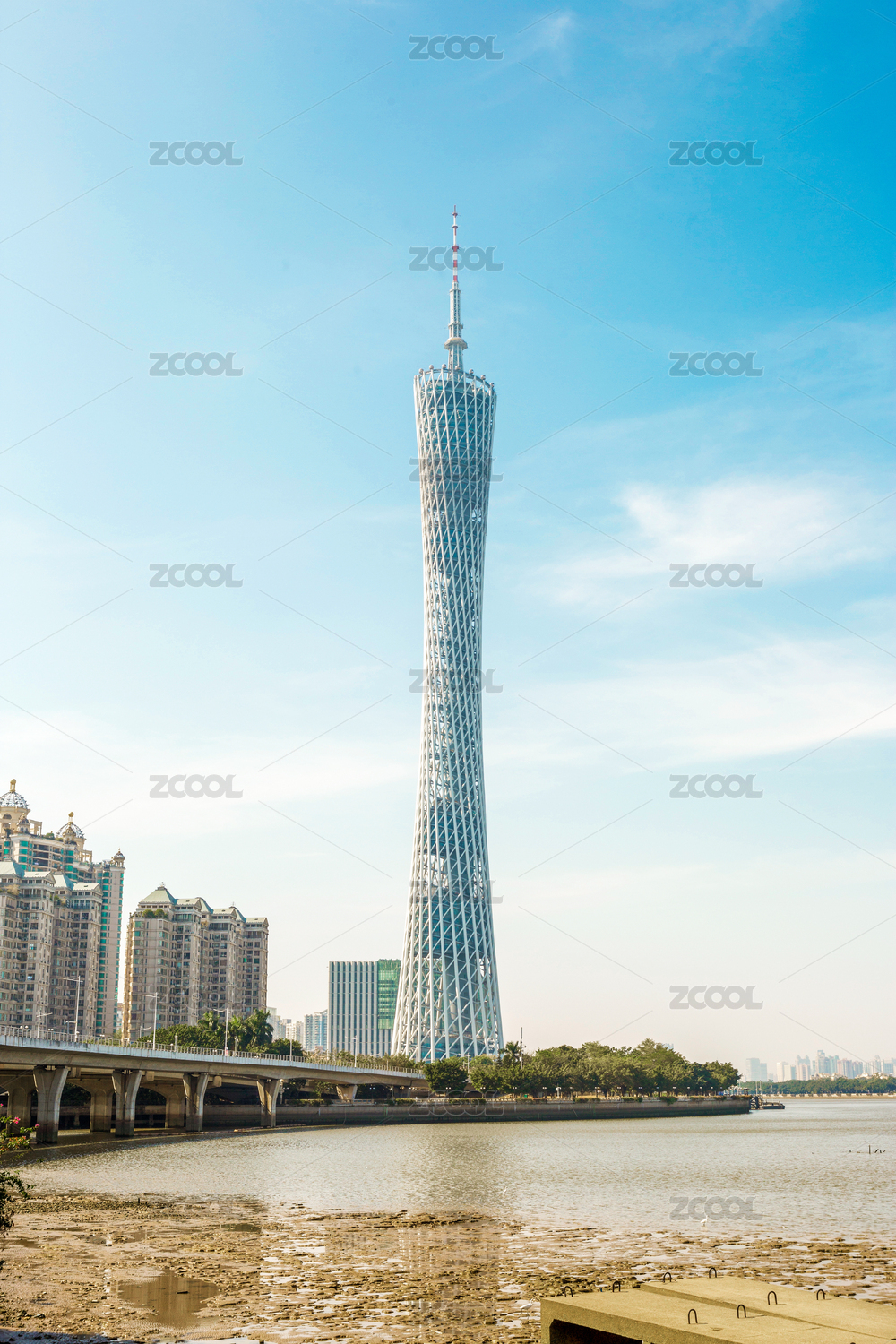 广州珠江两岸广州塔东塔西塔建筑群天际线