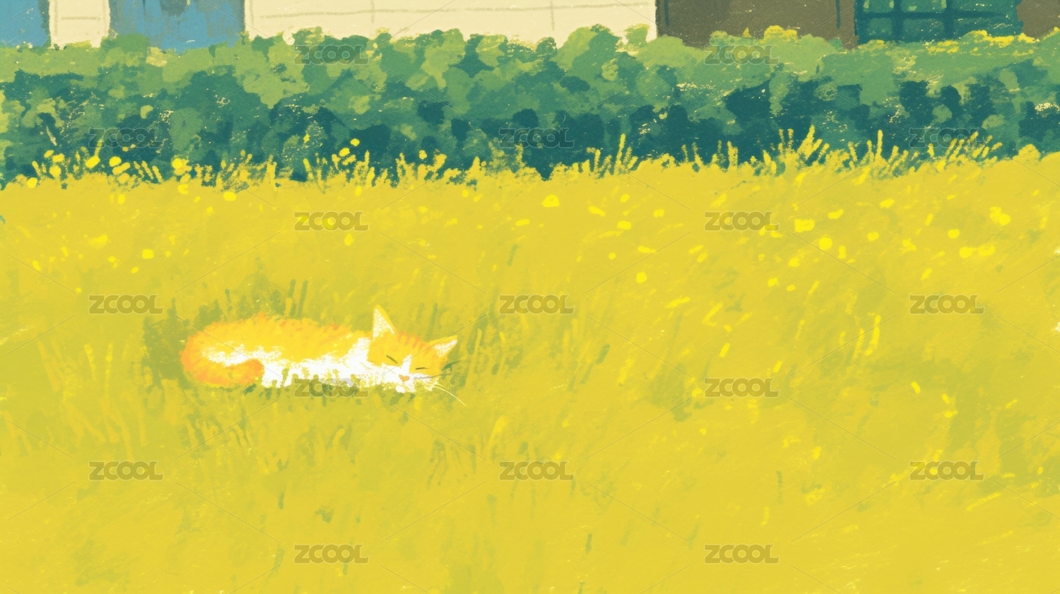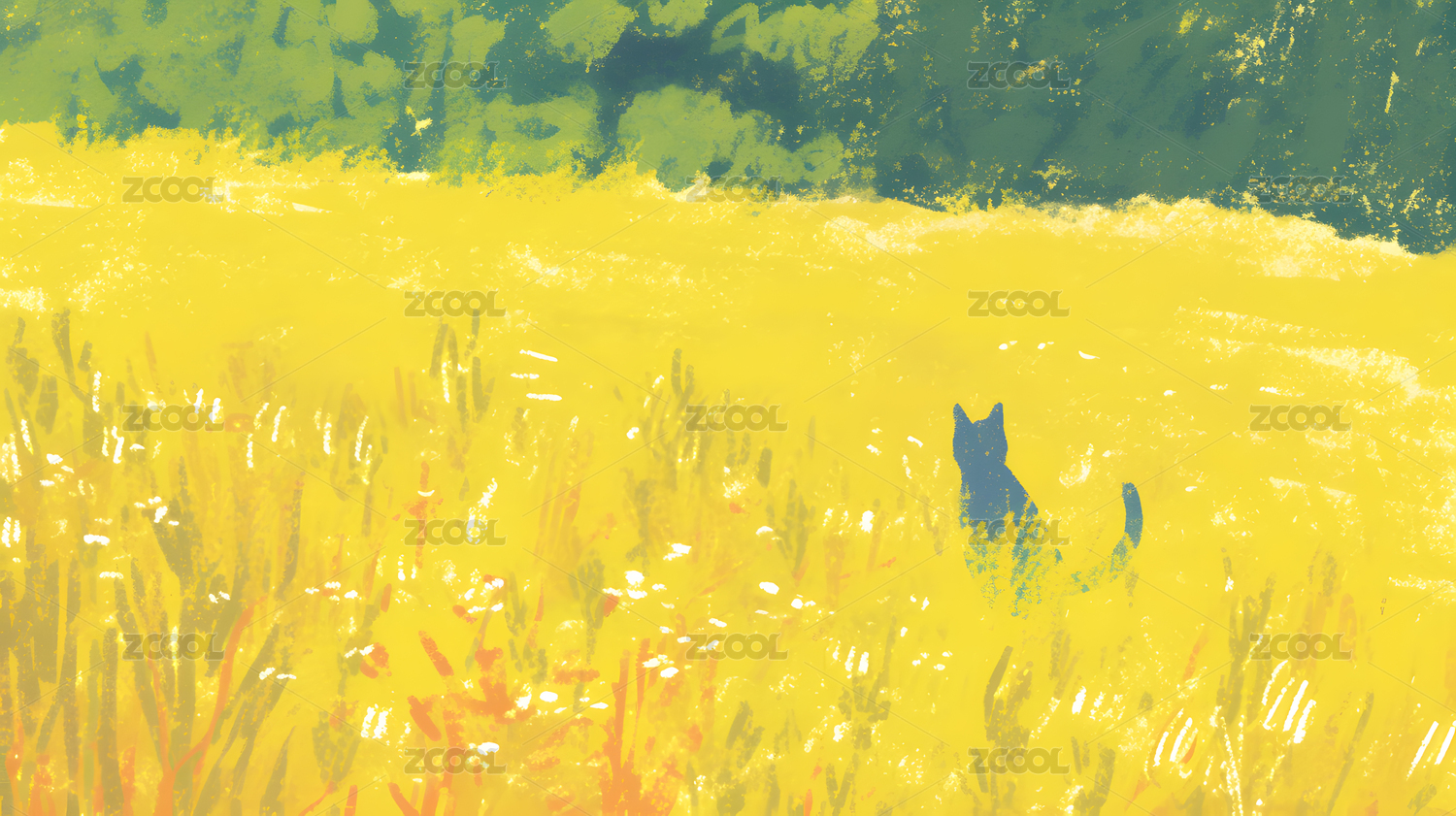猫咪躺在黄色花田中