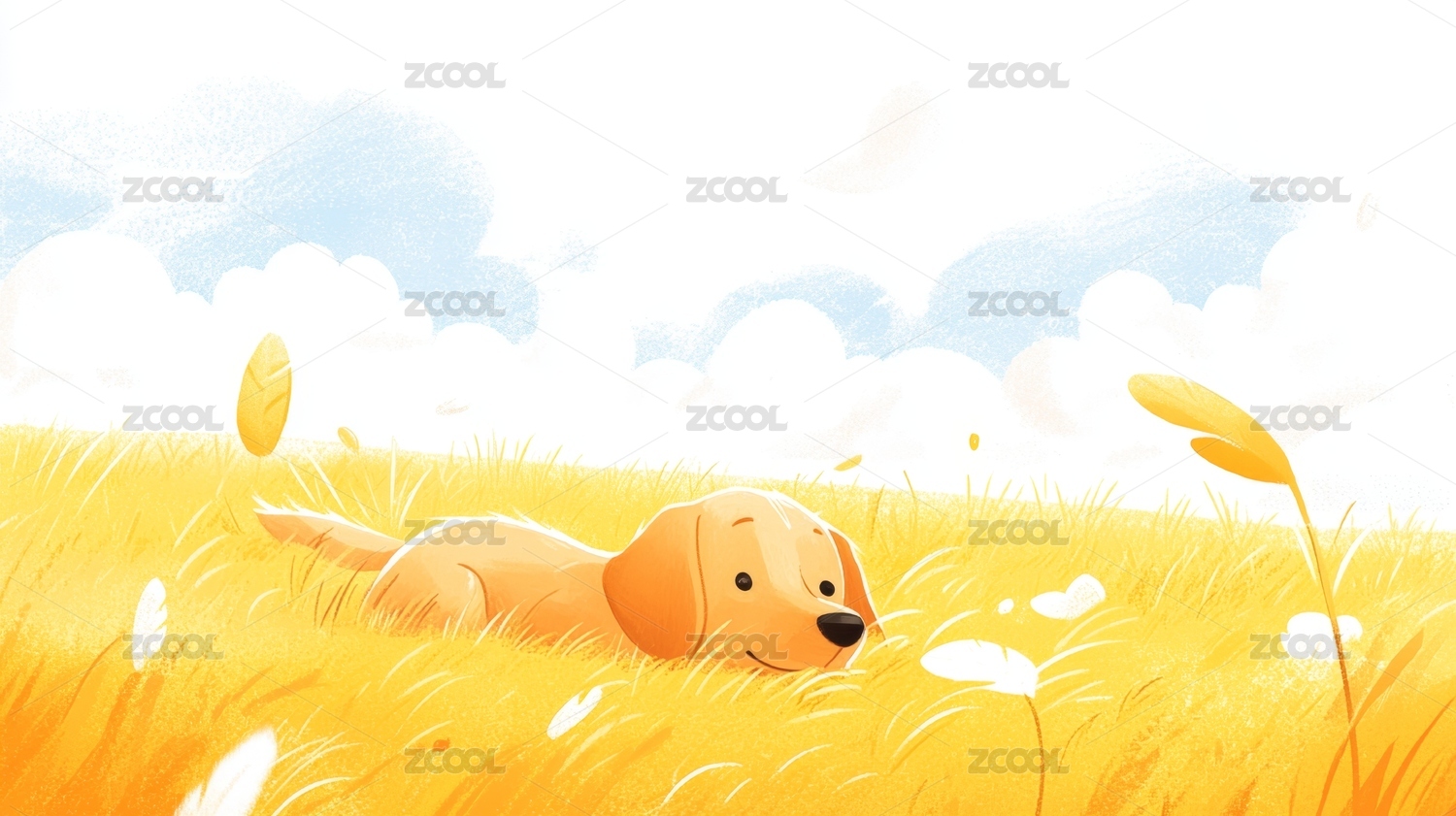 小清新草地上小狗卡通插画