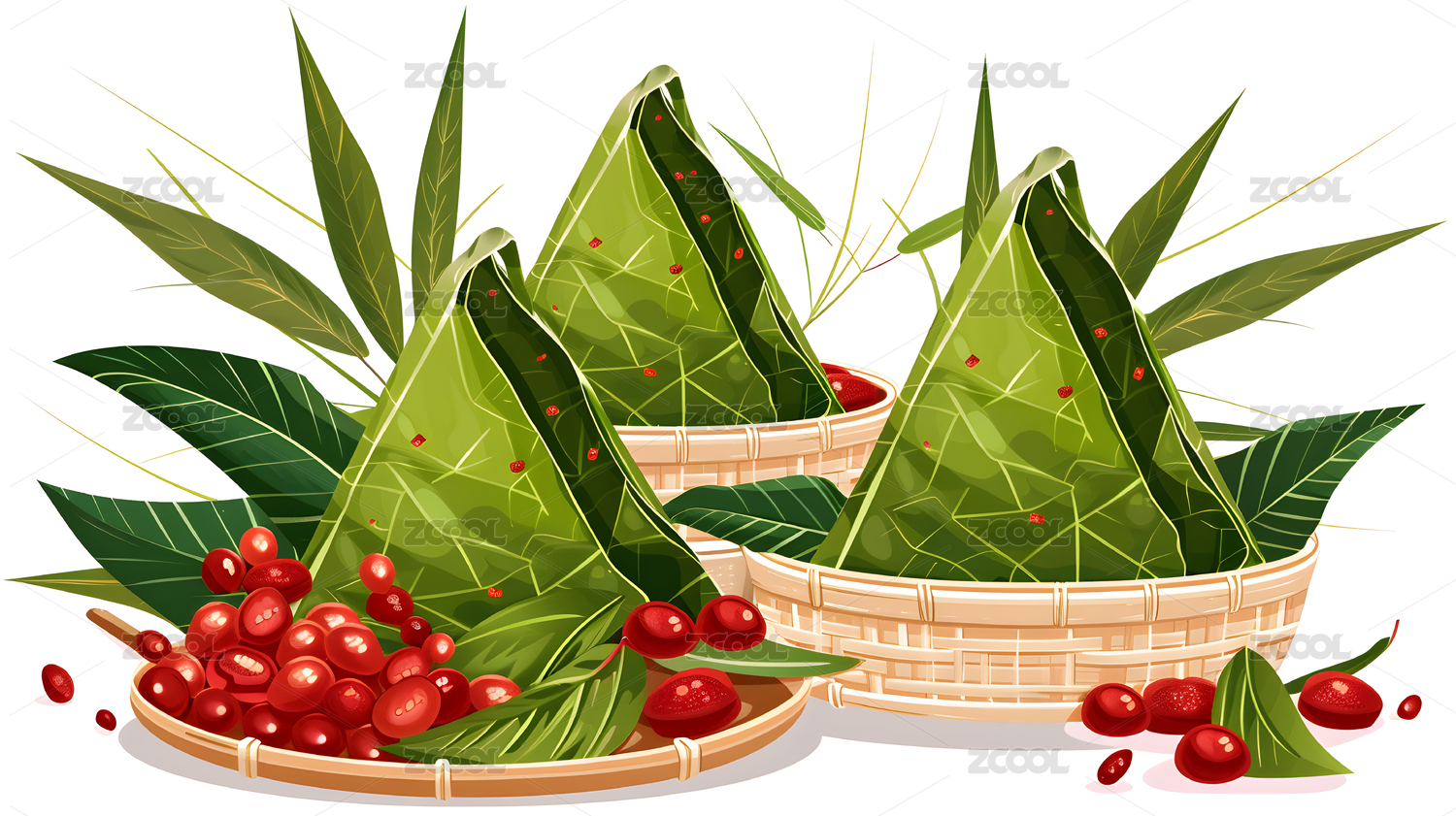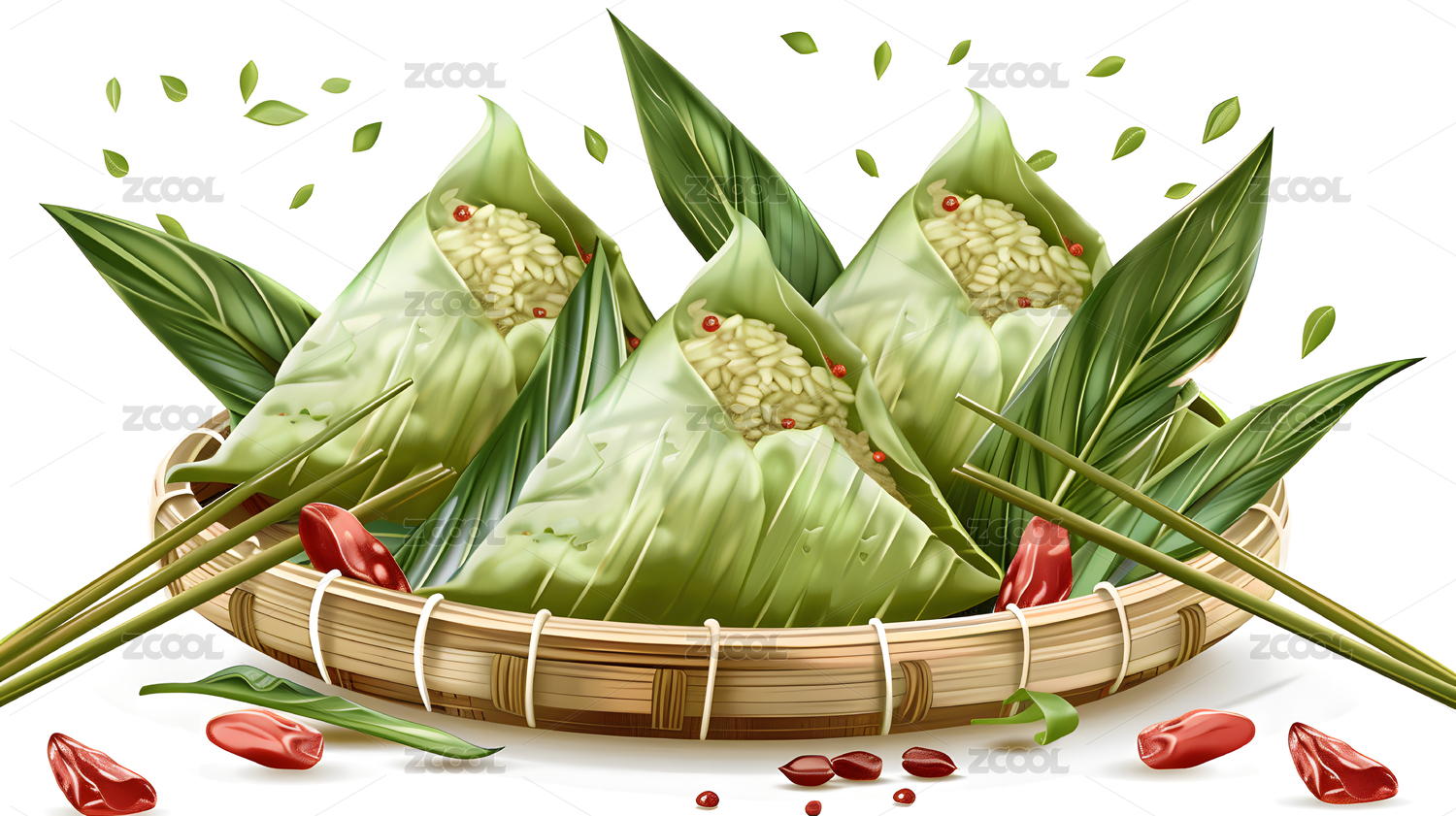 竹篮中的粽子与红枣