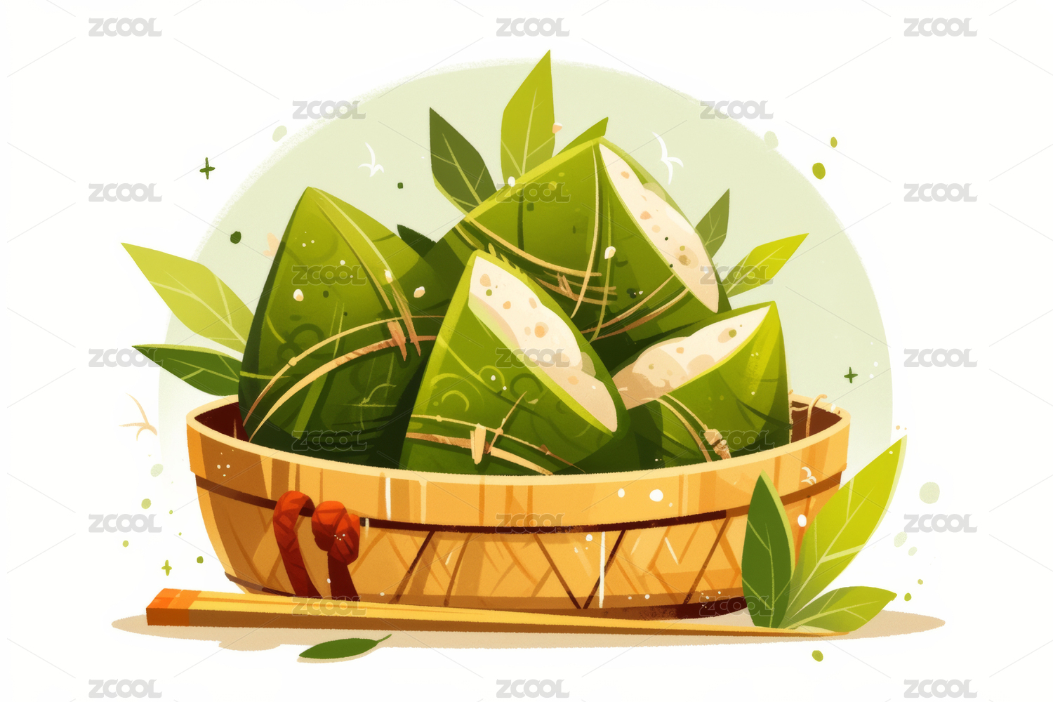 端午节小清新粽叶和粽子插画