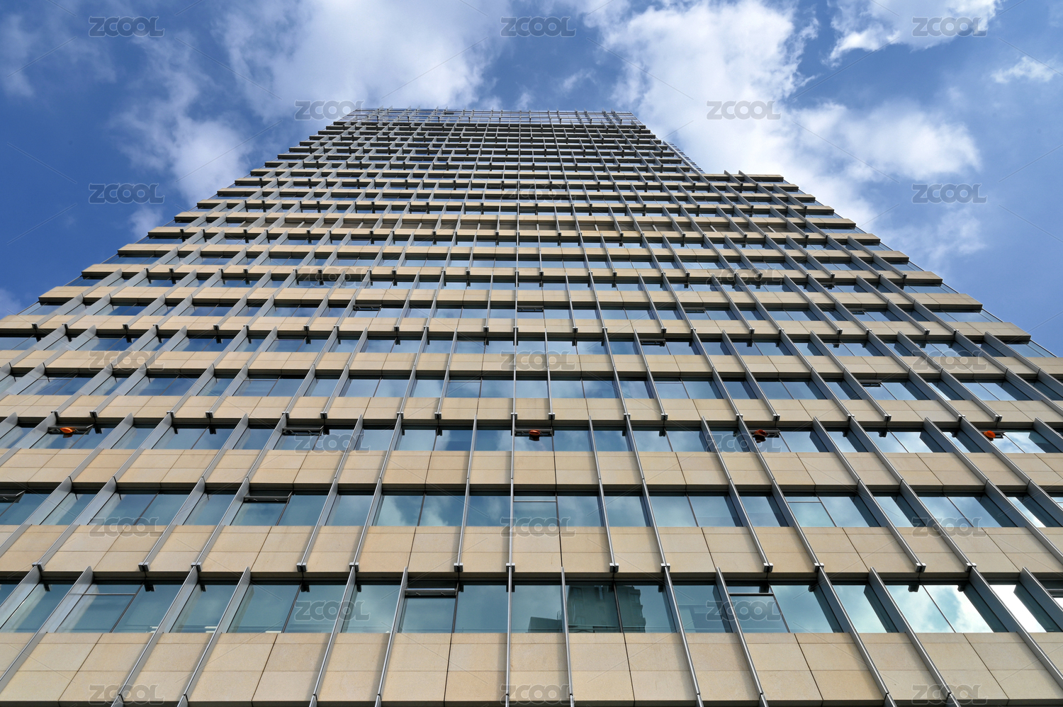 仰拍城市玻璃建筑幕墙产生透视汇聚线条
