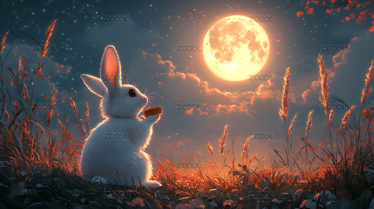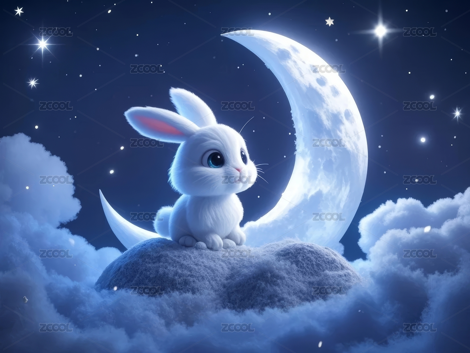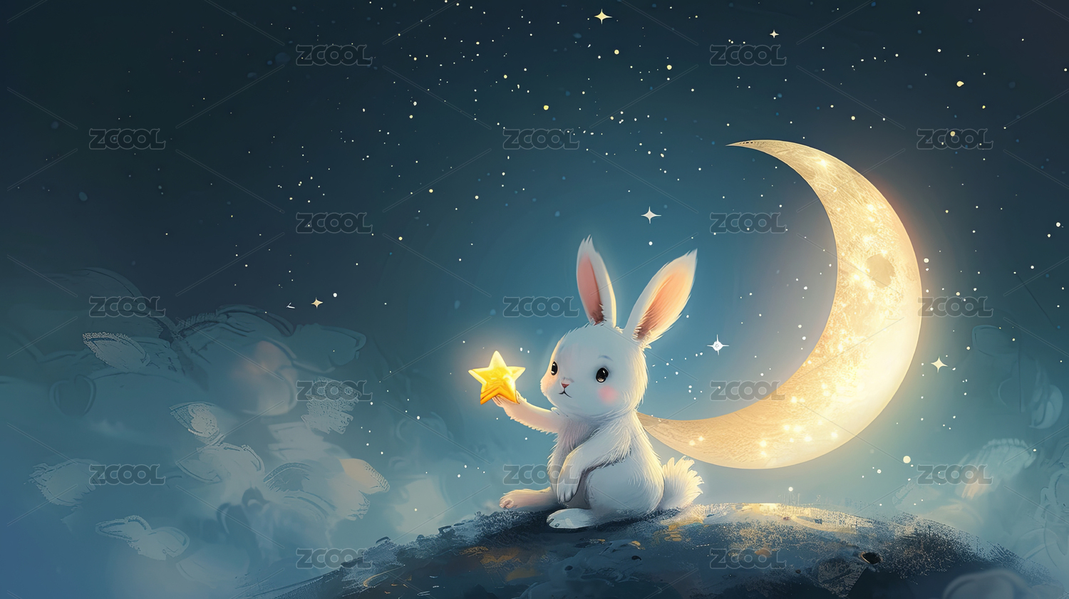 兔子,星星,月亮,夜晚,星空,可爱,月光