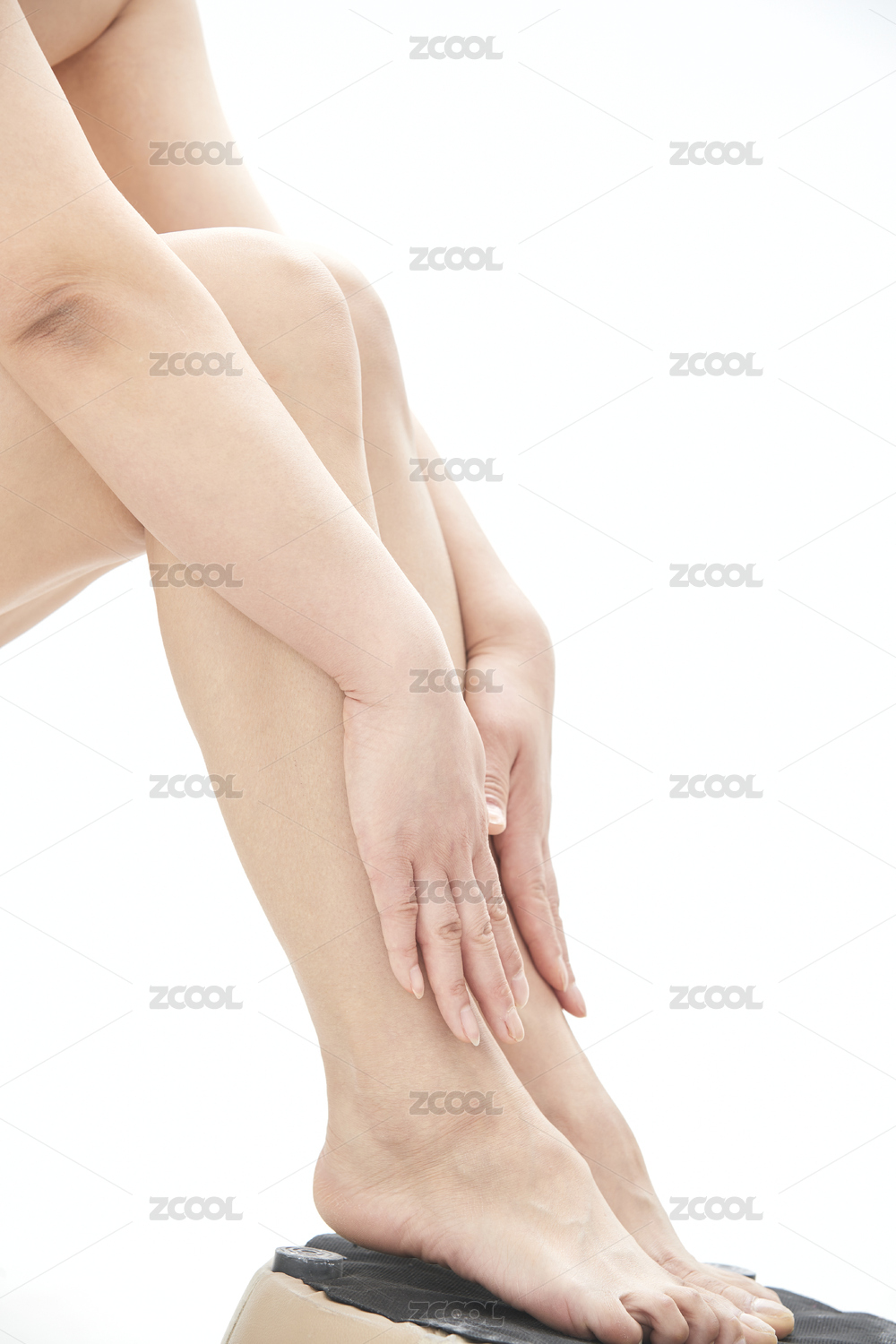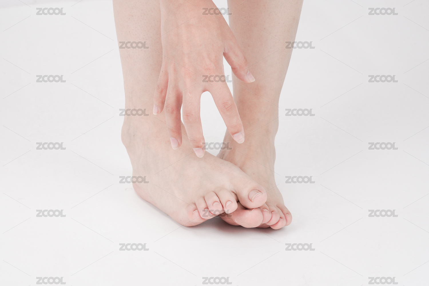 一个人脚部瘙痒难耐疑似得了灰指甲脚气香港脚正在挠痒痒解痒棚拍白色背景