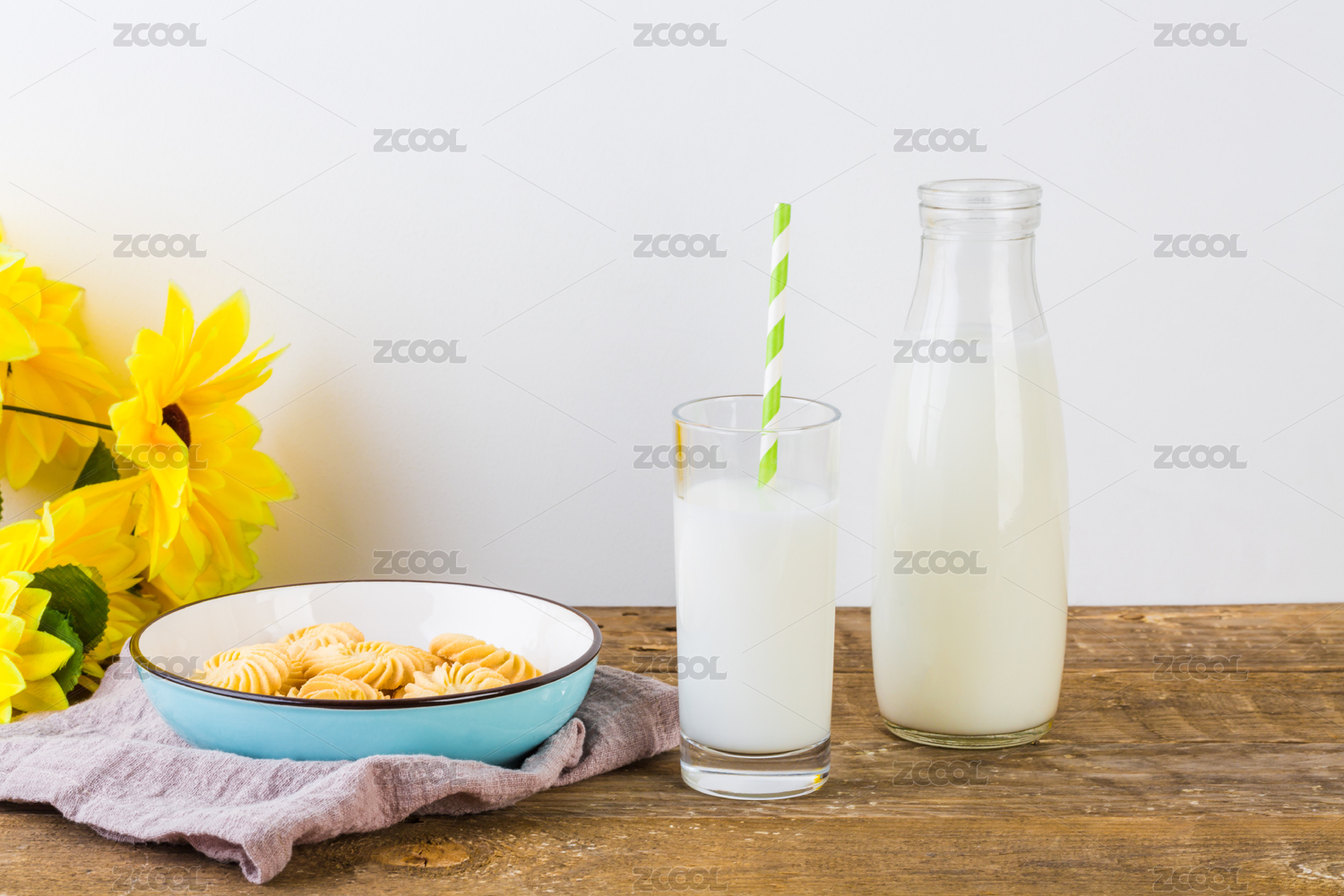 玻璃瓶,玻璃,曲奇饼干,曲奇,牛奶,一瓶,瓶子,习惯,桌子,俯拍