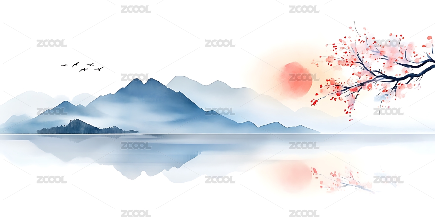 水墨山水,禅意,禅文化,中国风,水墨画,梅花,花鸟画,背景墙,日出,山水画