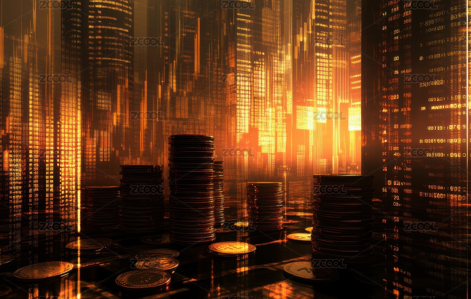 金币堆都市风金融场景