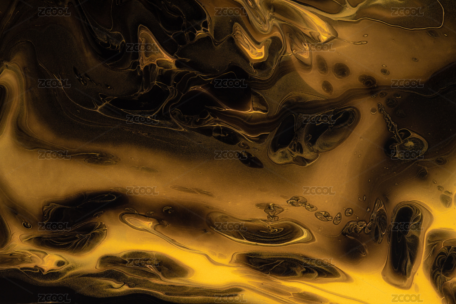 黑白黄混合颜料流体艺术,抽象的彩色背景墙纸纹理。