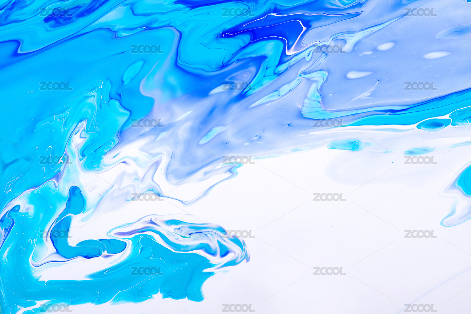 蓝青白混合颜料流体艺术,抽象的彩色背景墙纸纹理。