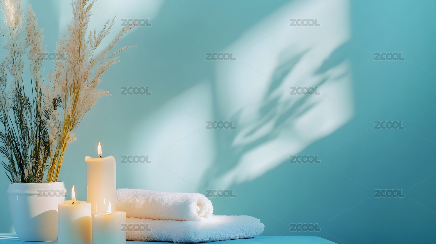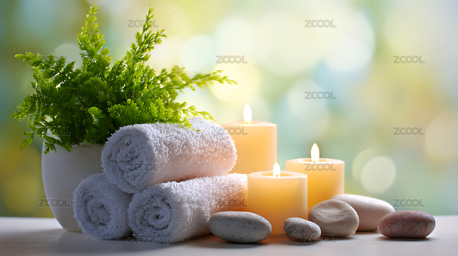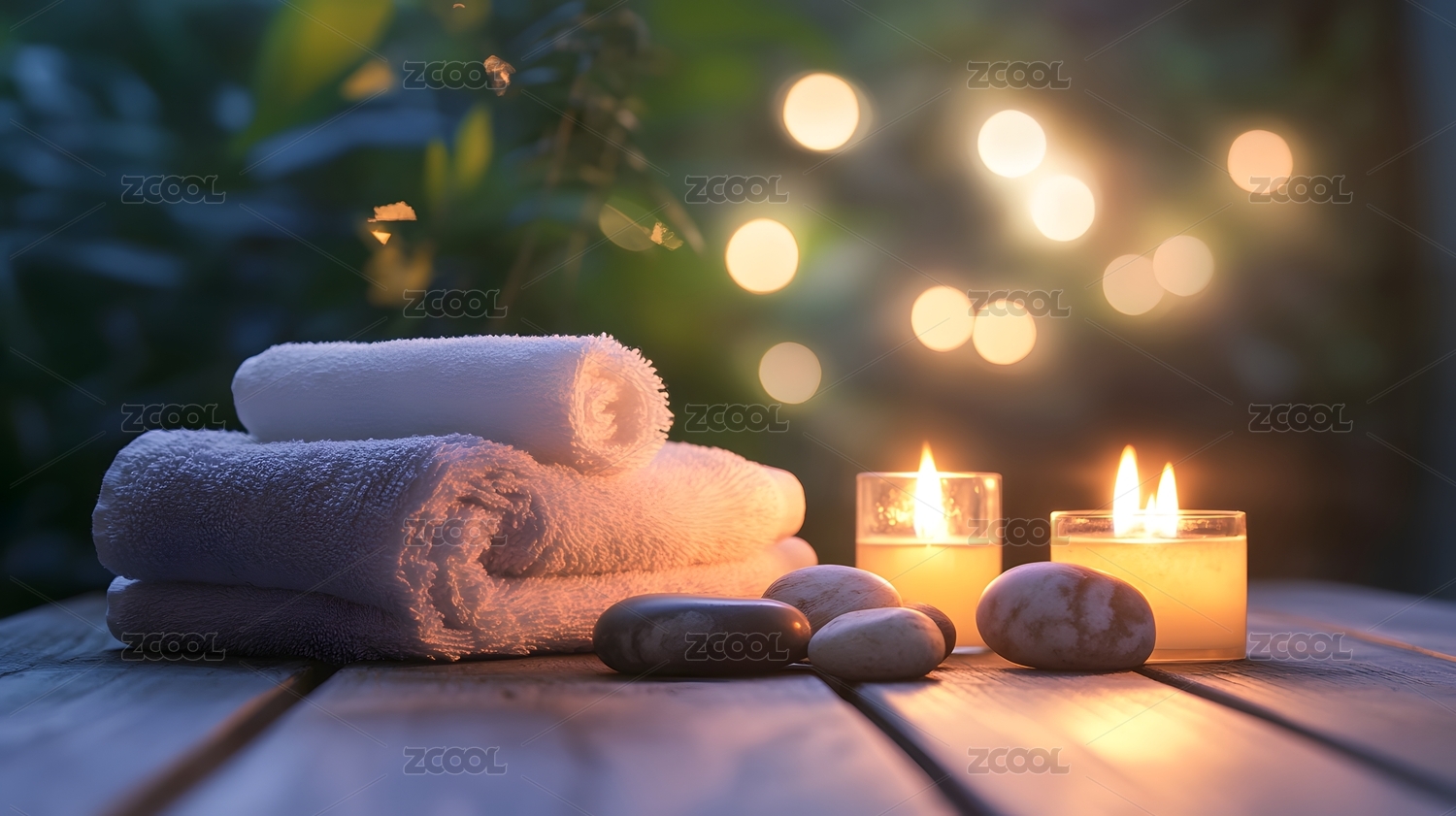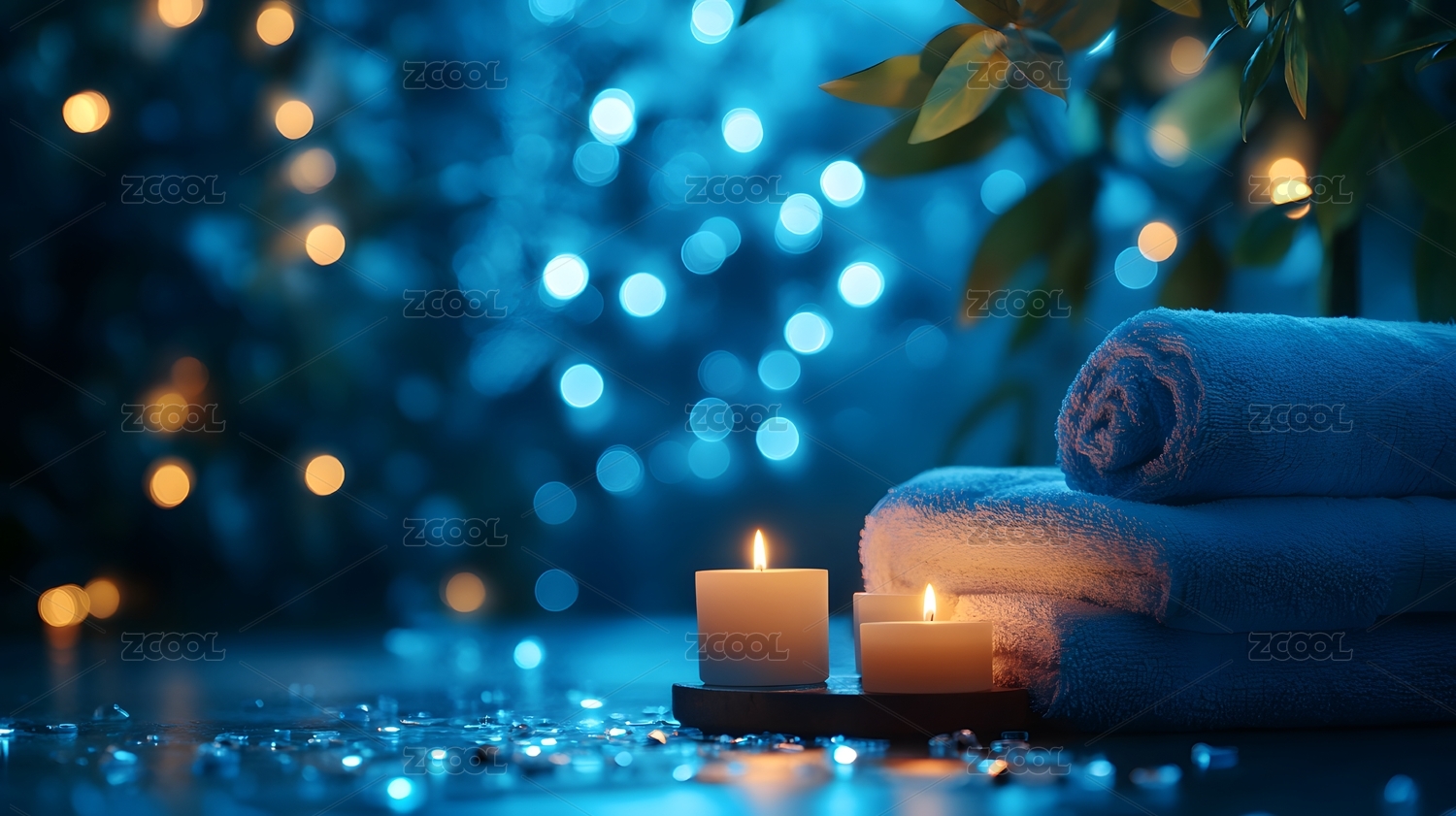 水疗馆放松场景,烛光与毛巾