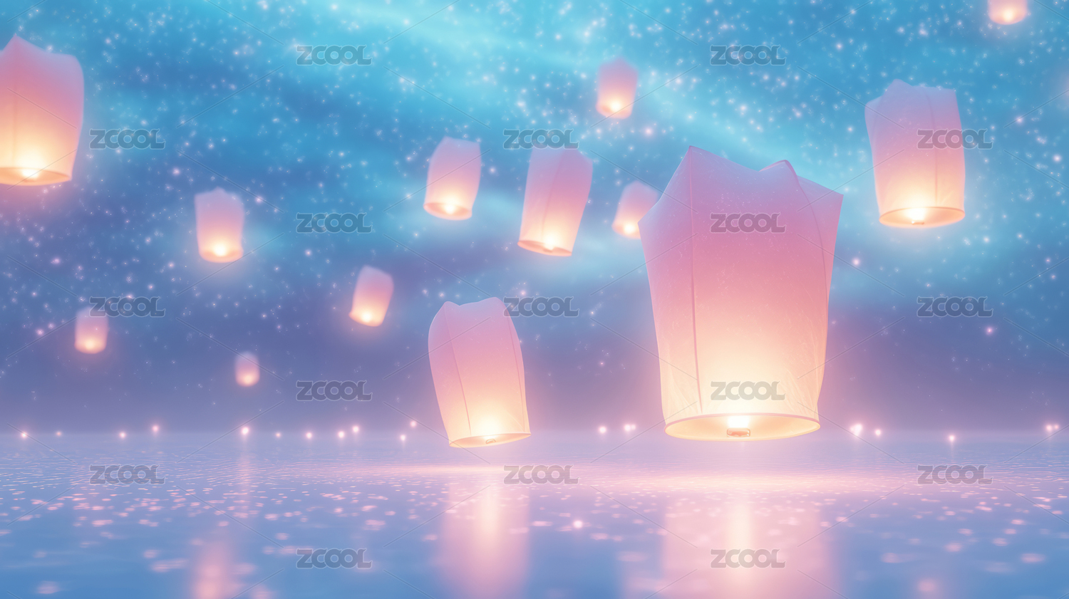 孔明灯天空水面节日背景
