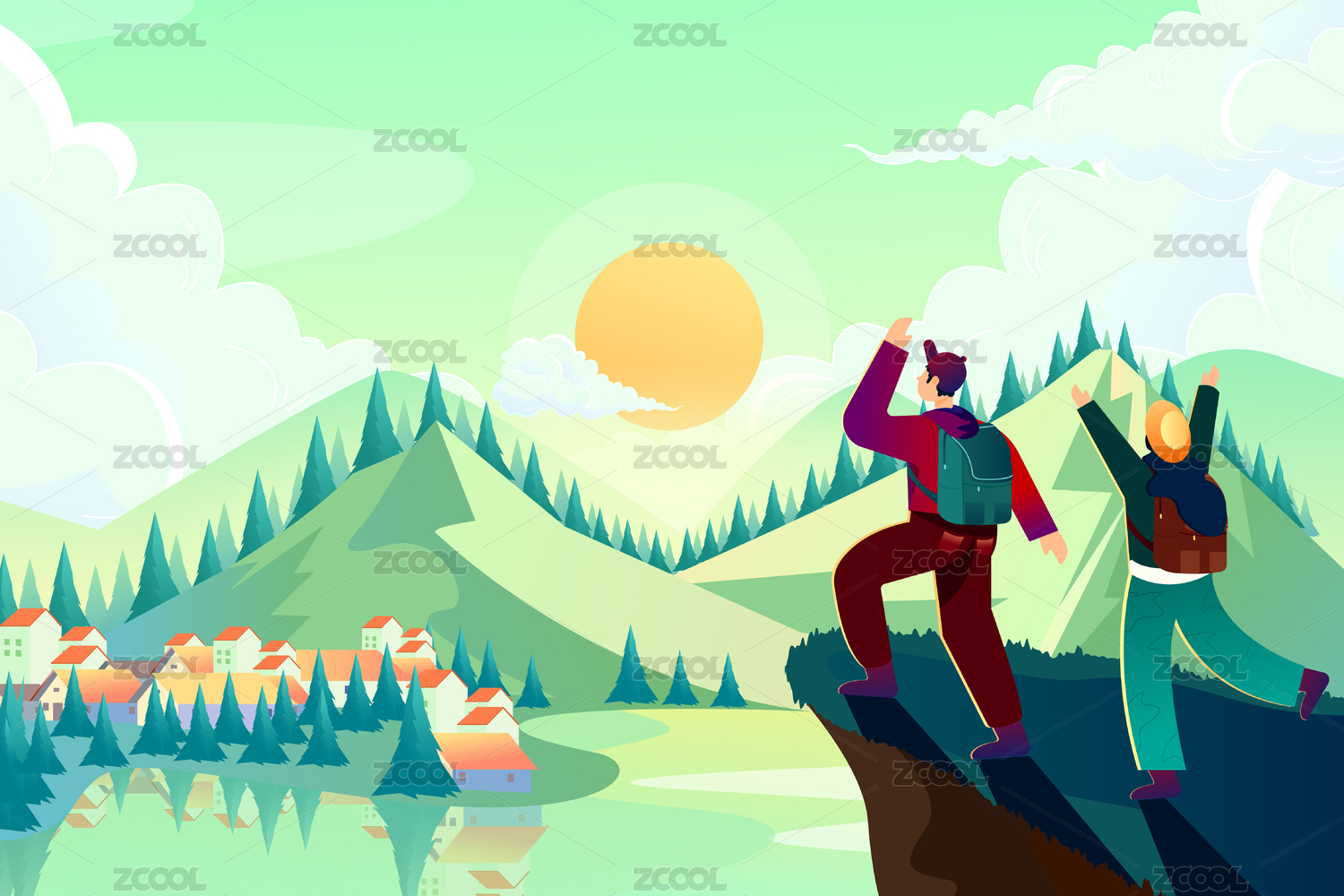 卡通夏季乘凉吃西瓜大暑节气背景矢量插画