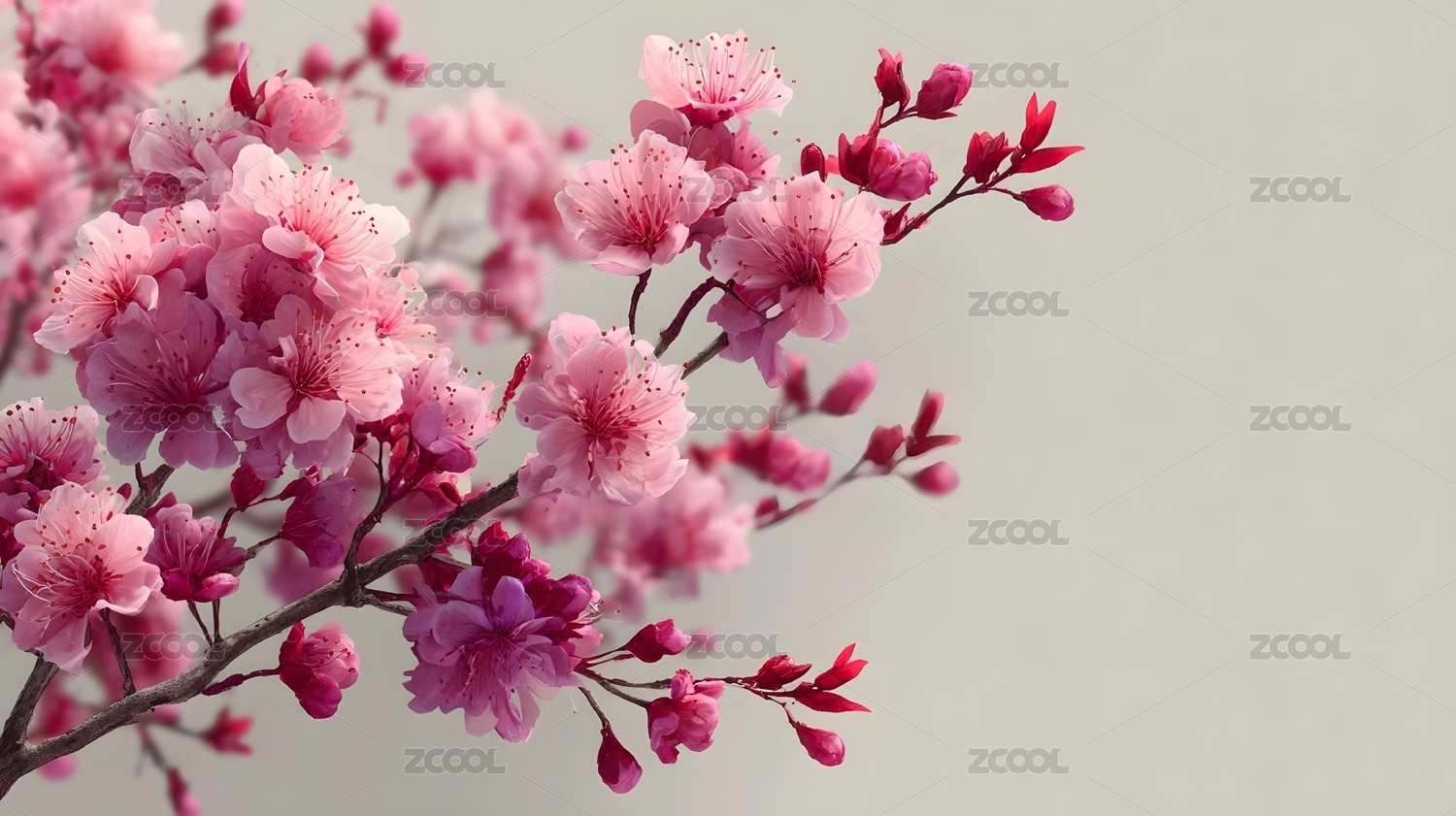 盛开的桃花花枝水墨风手绘水彩插画素材