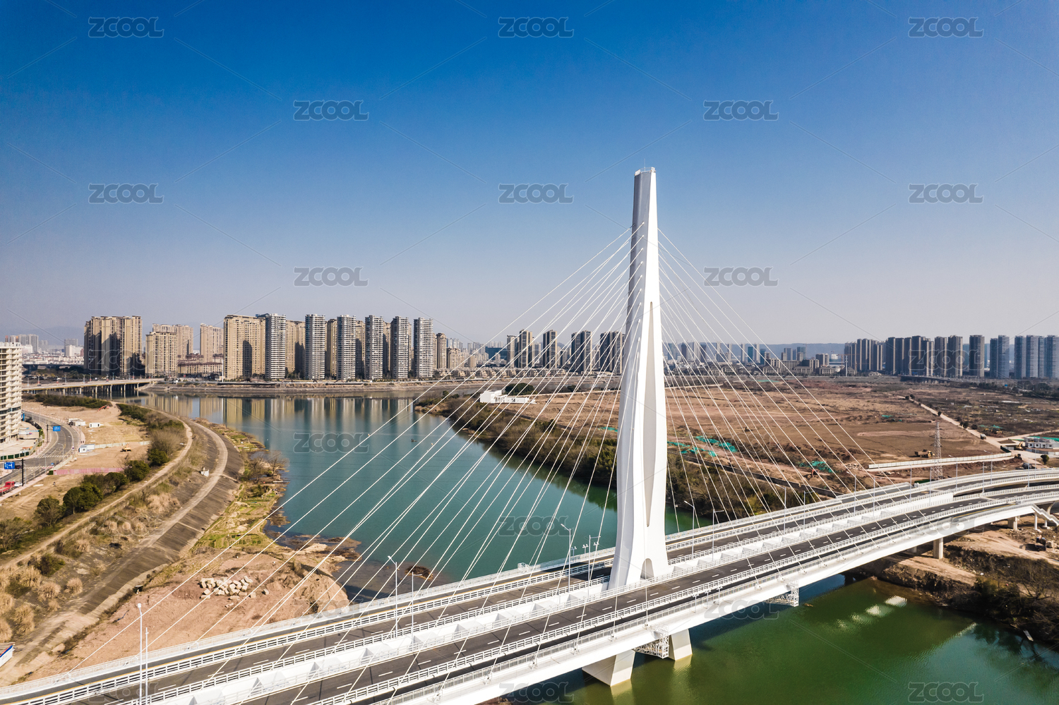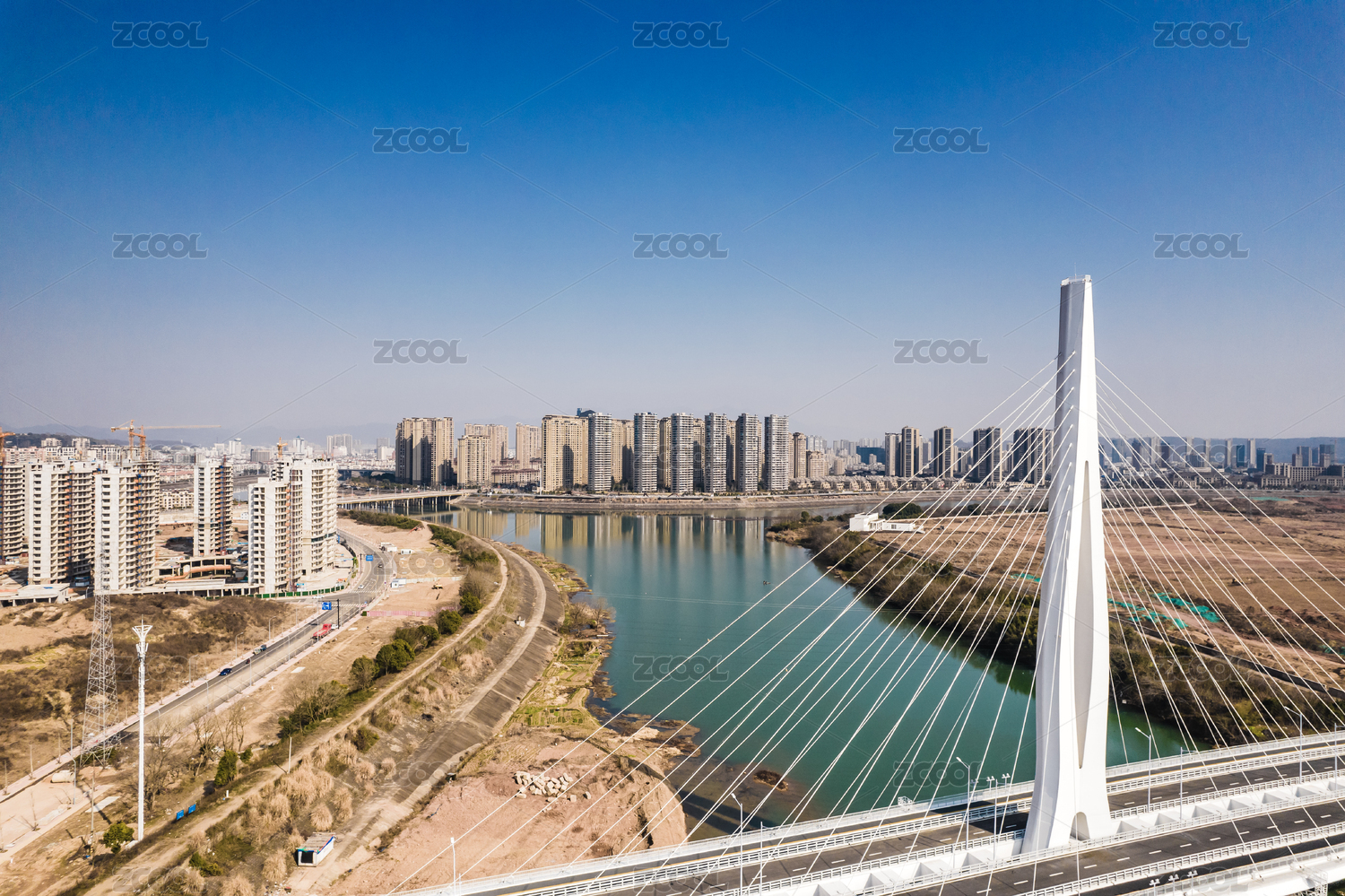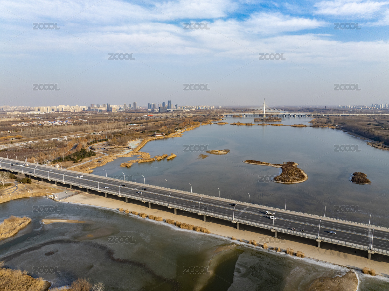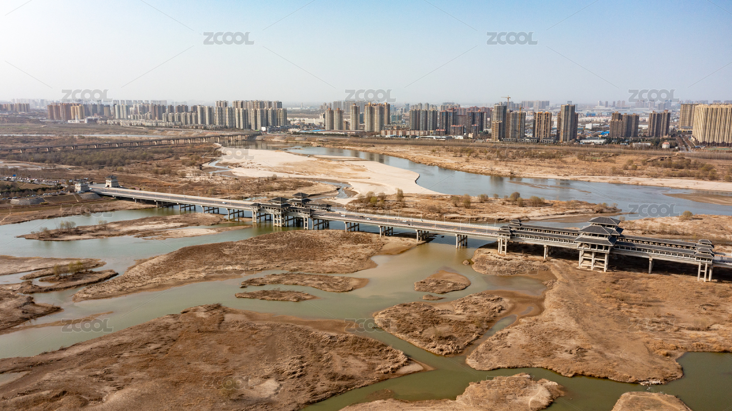 河北省石家庄市复兴大街滹沱河大桥航拍图片