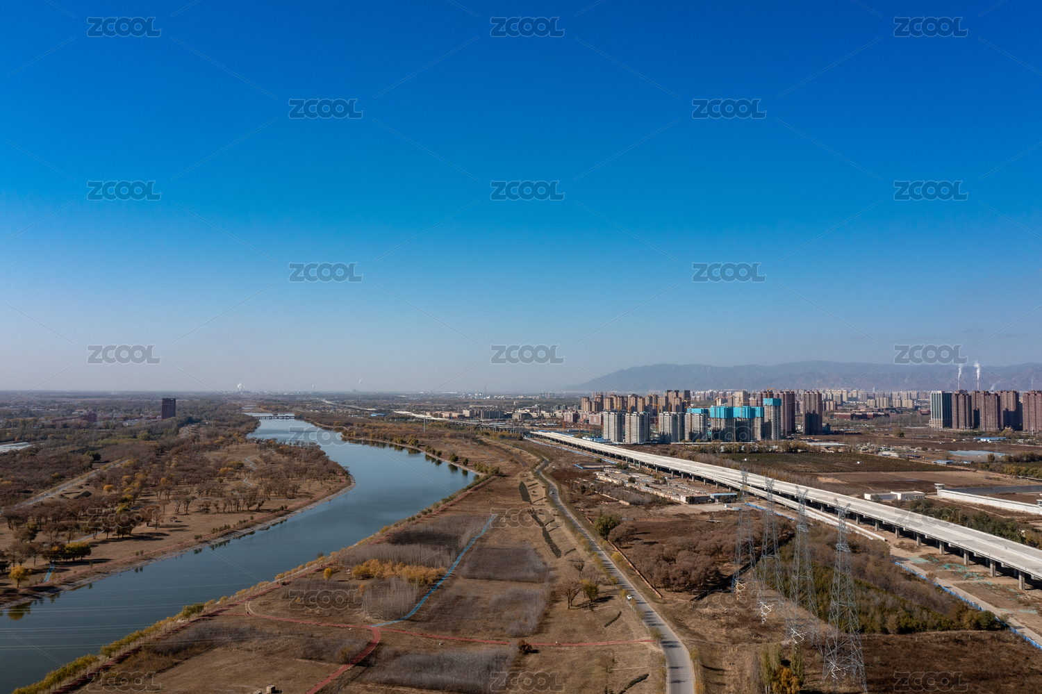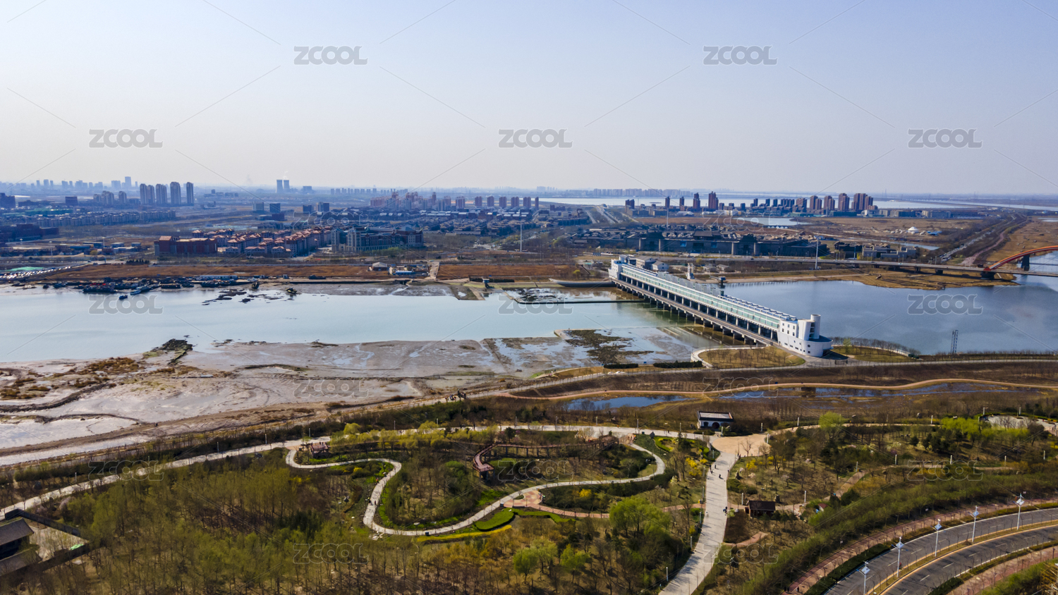 河北省石家庄市滹沱河生态旅游区航拍图片