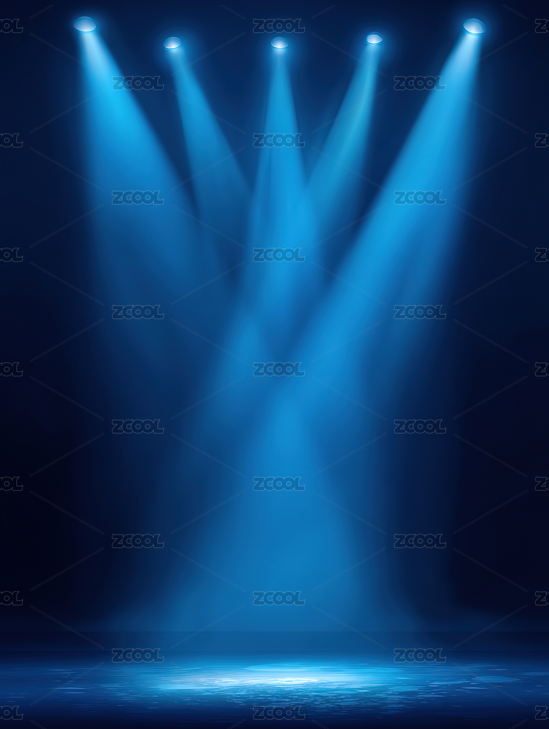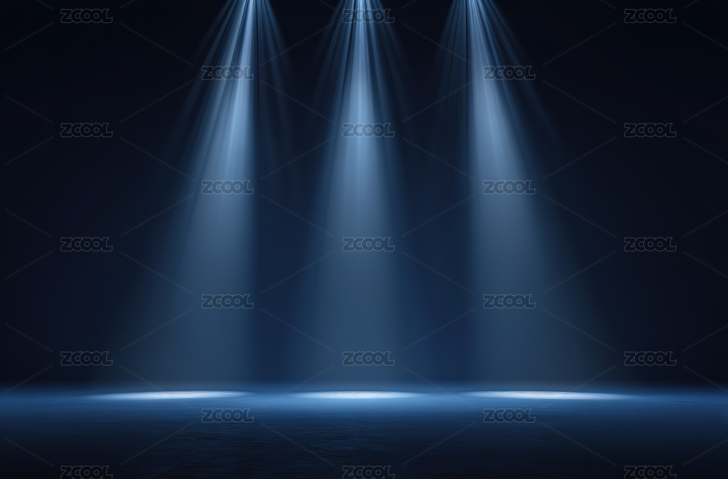 深色背景多束蓝白灯光照射舞台