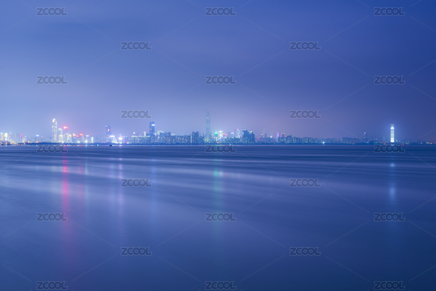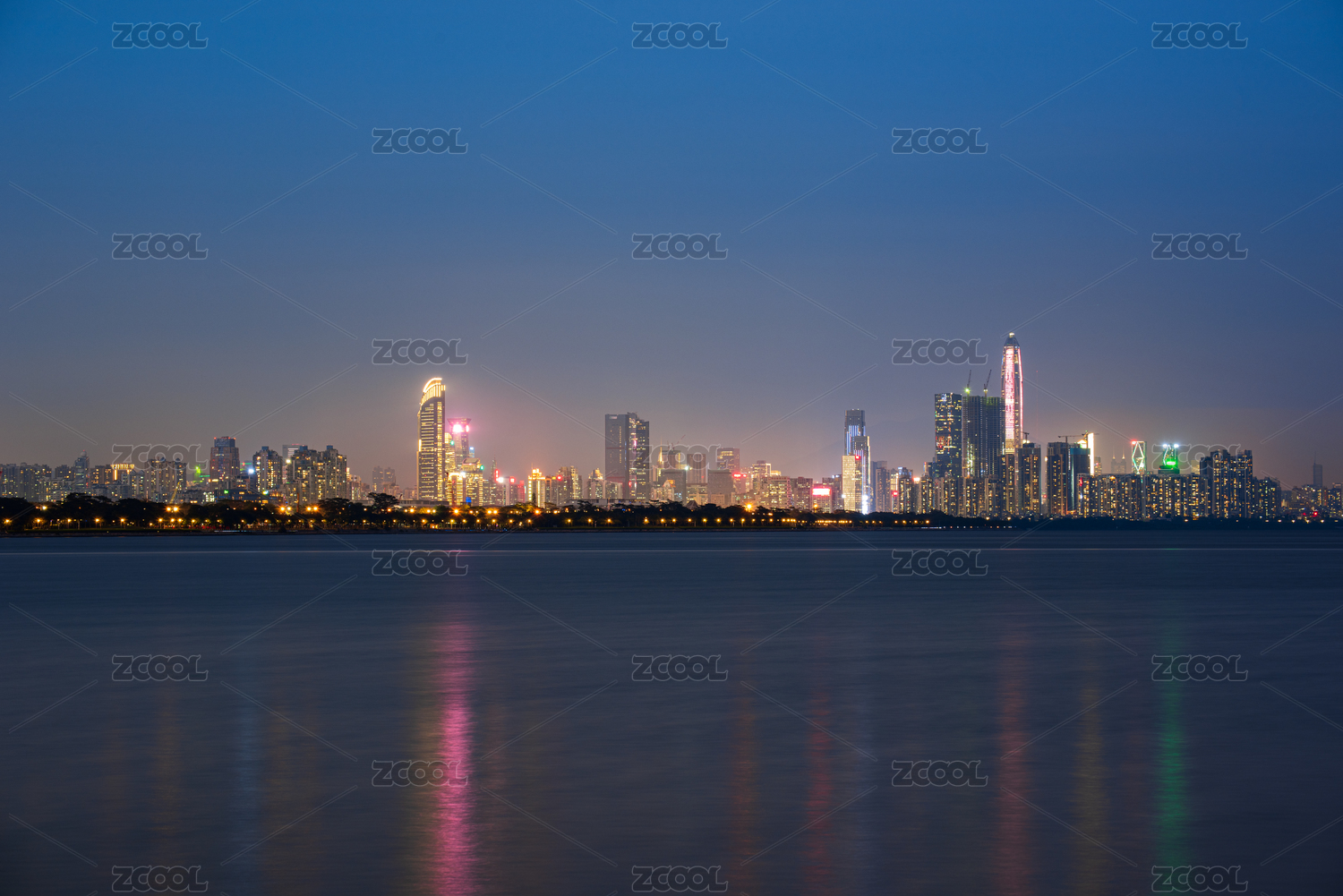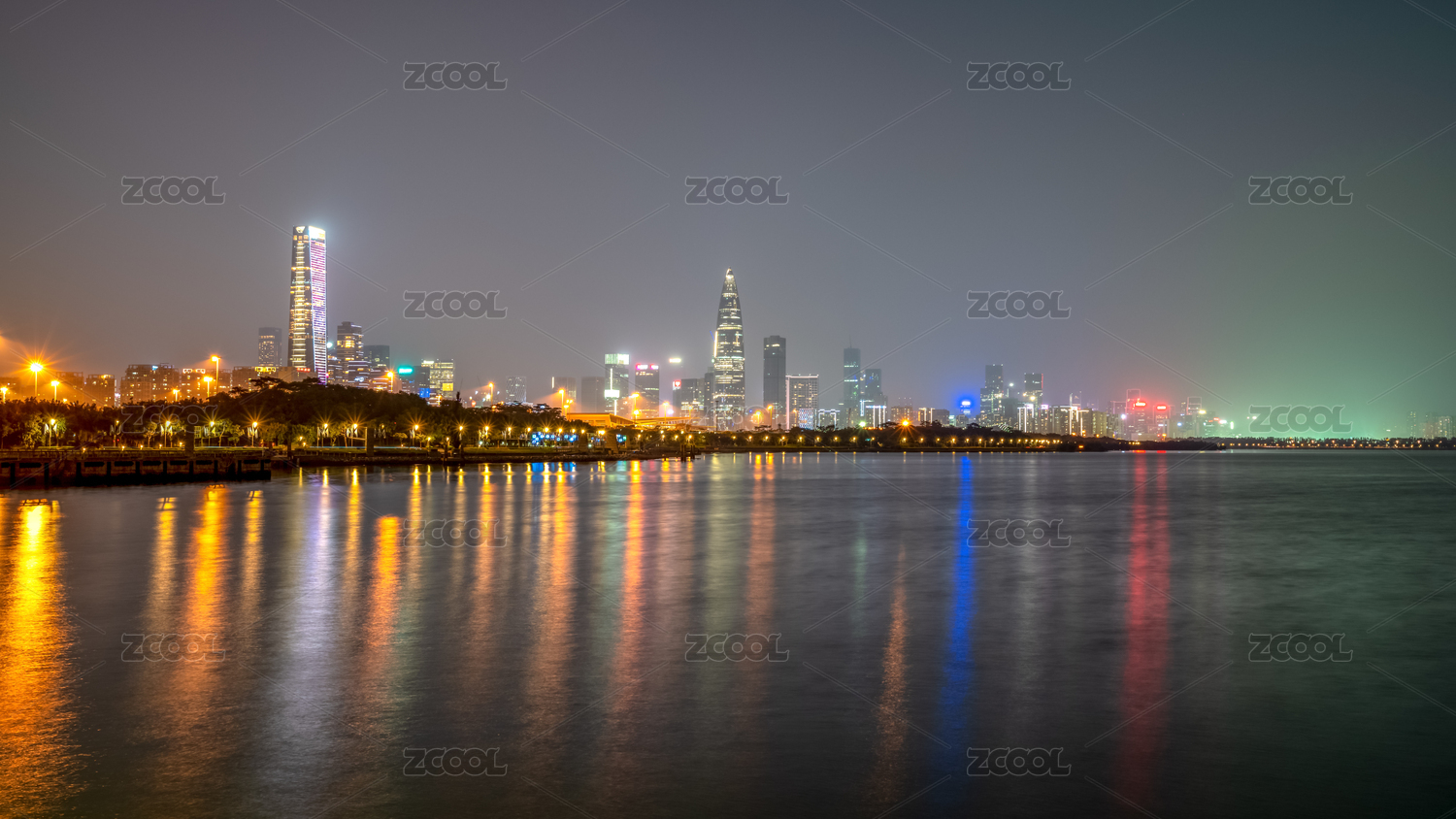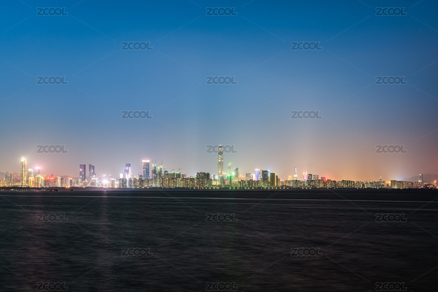 中国广东省深圳市南山区深圳湾公园城市夜景