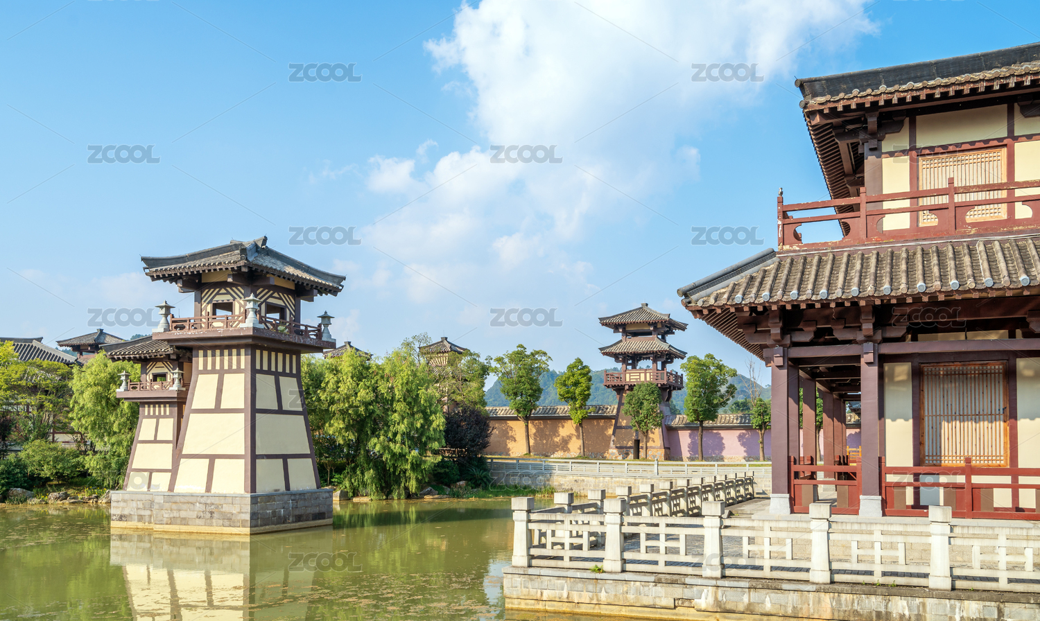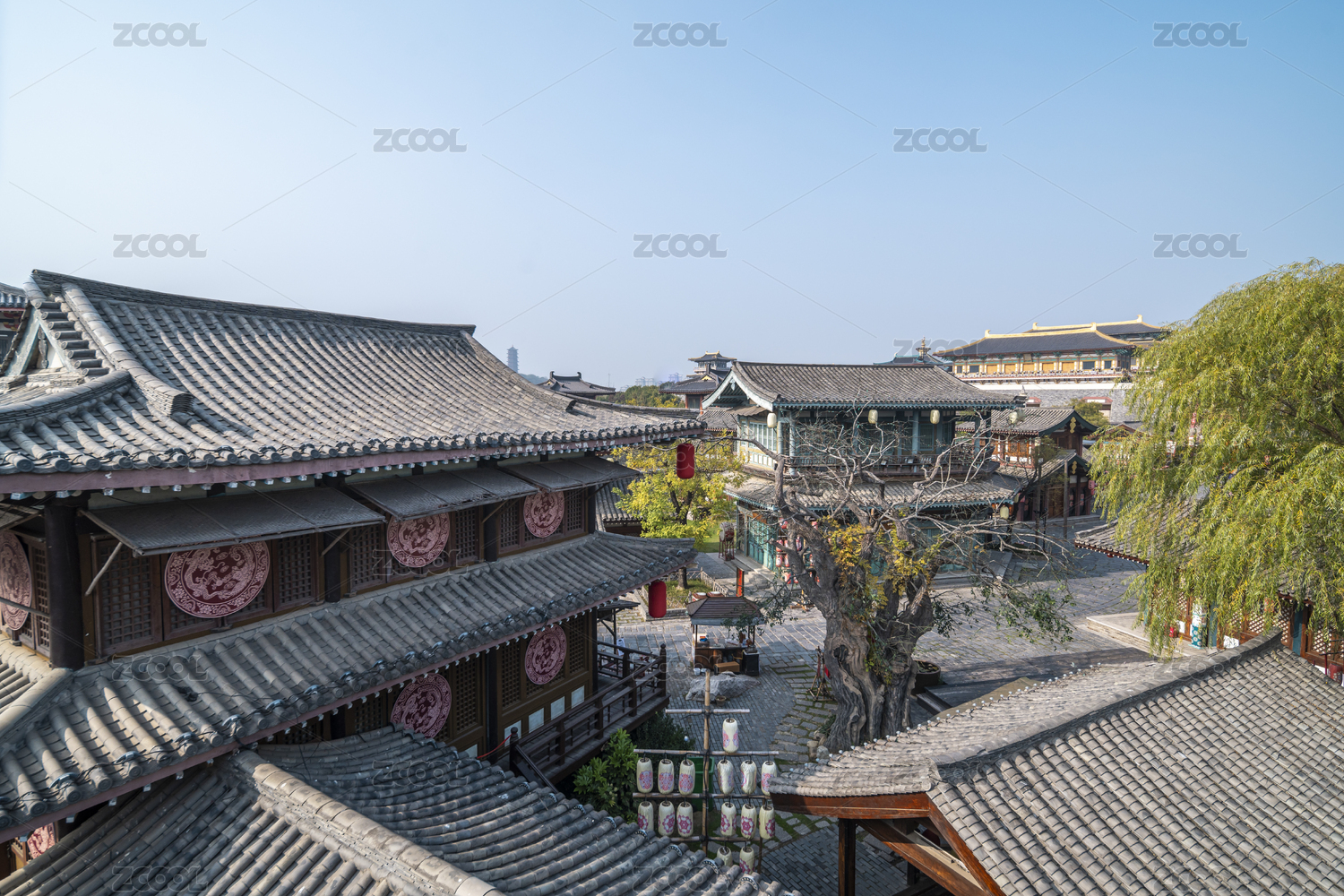 中国河南省濮阳市濮水小镇木雕楼园林建筑