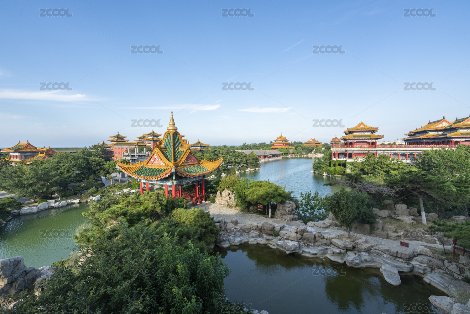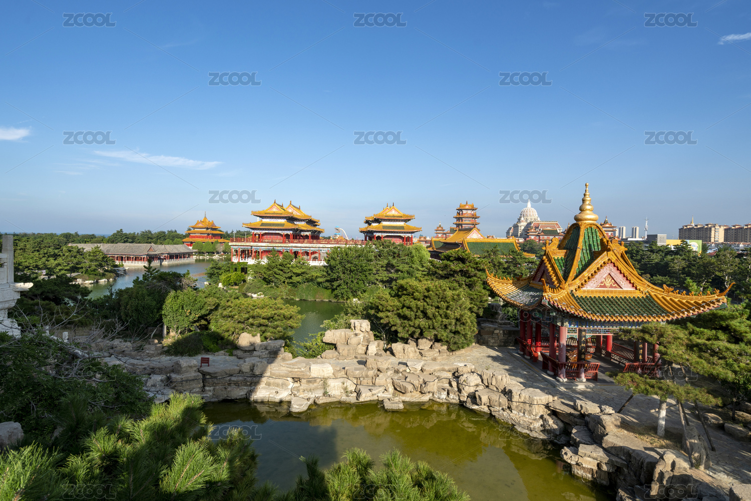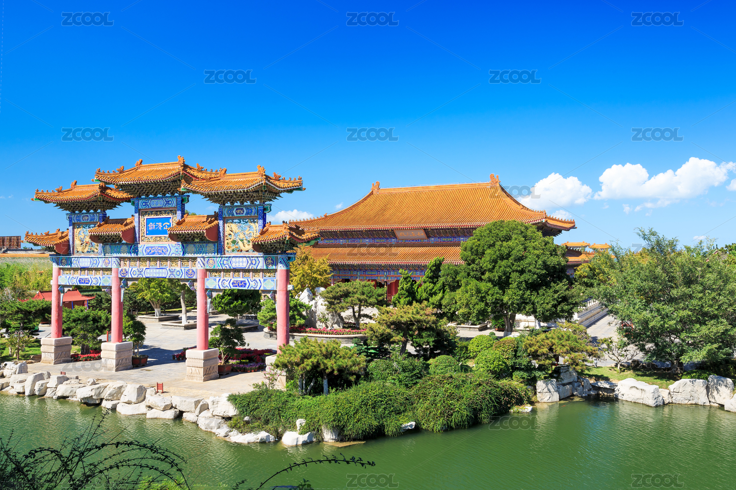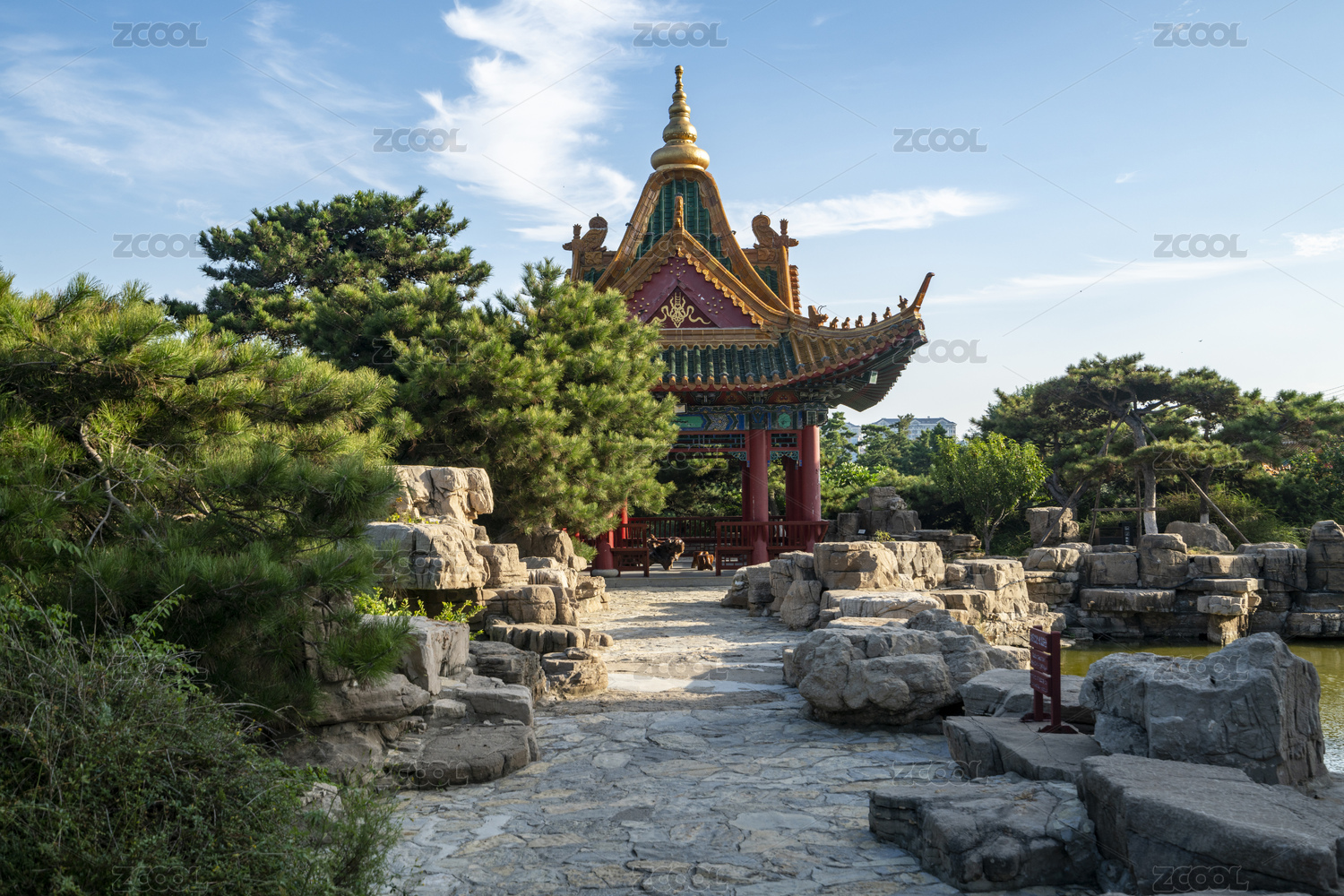 中国山东省烟台市蓬莱三仙山景区建筑景观