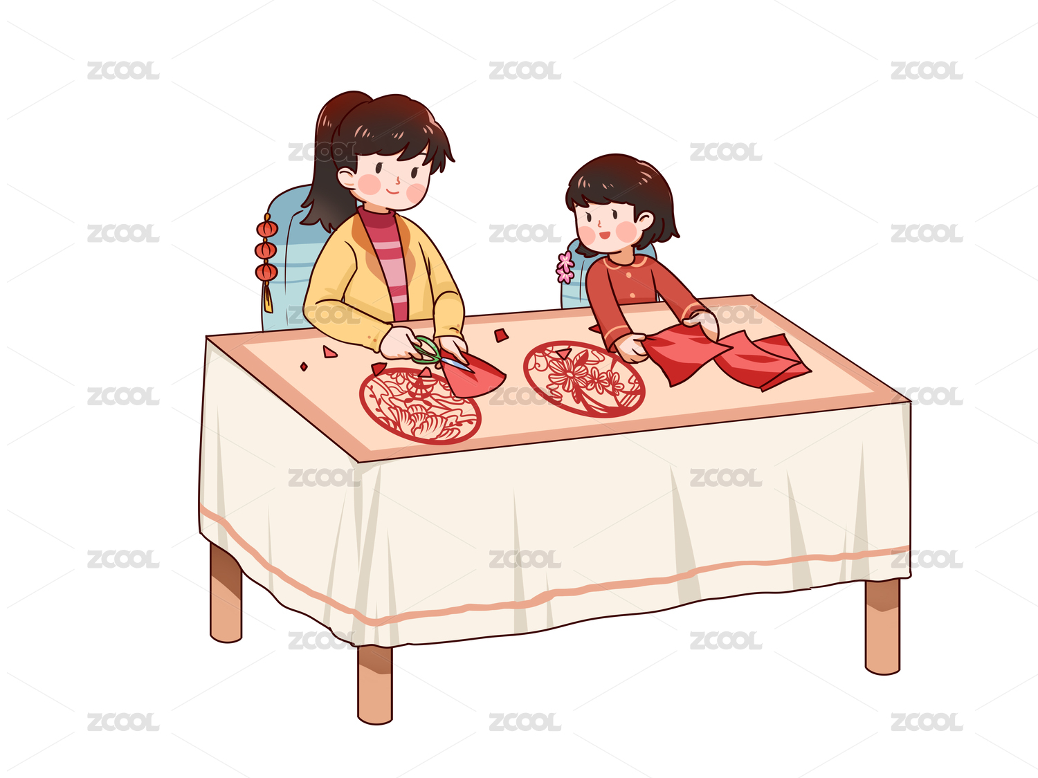 小寒剪窗花的人桌子姐姐剪窗花剪纸灯笼