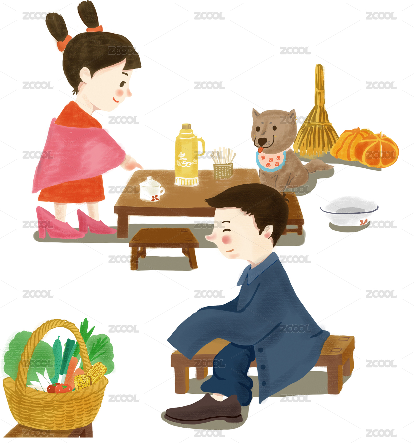 春节新年看着年货的两个女孩免抠人物元素