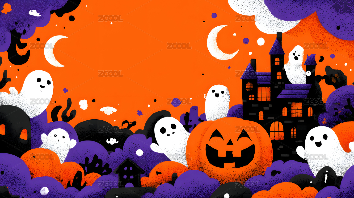噪点,插画,派对,万圣节,骷髅,幽灵,南瓜,杰克灯,糖果,骨头