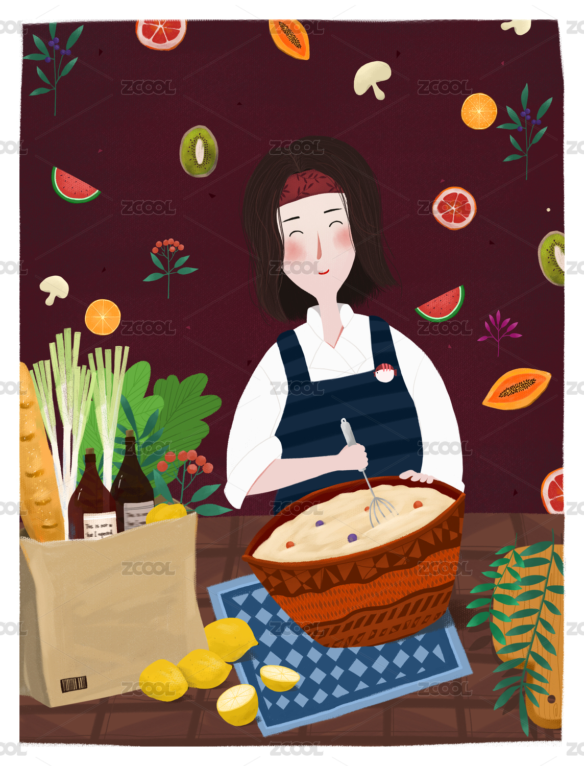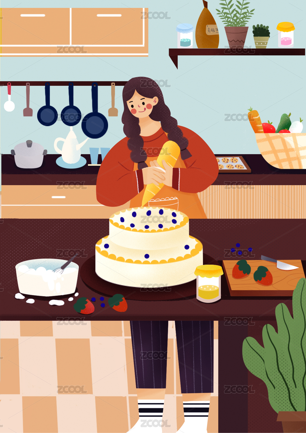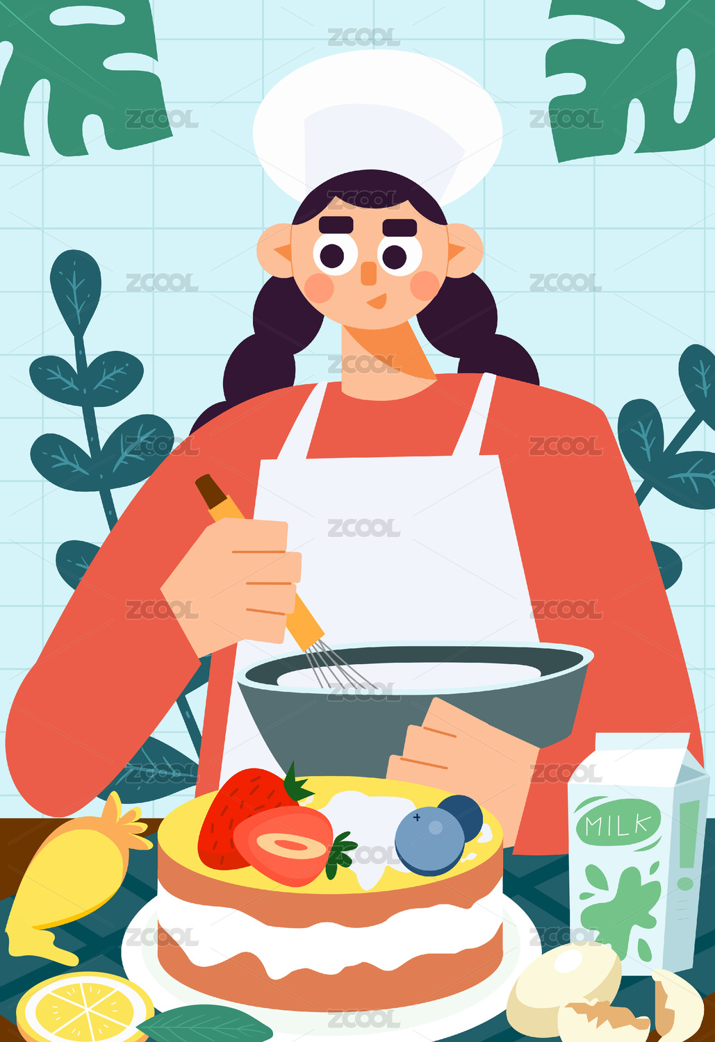 厨师蛋糕饮料烘培扁平运营插画启动页弹窗