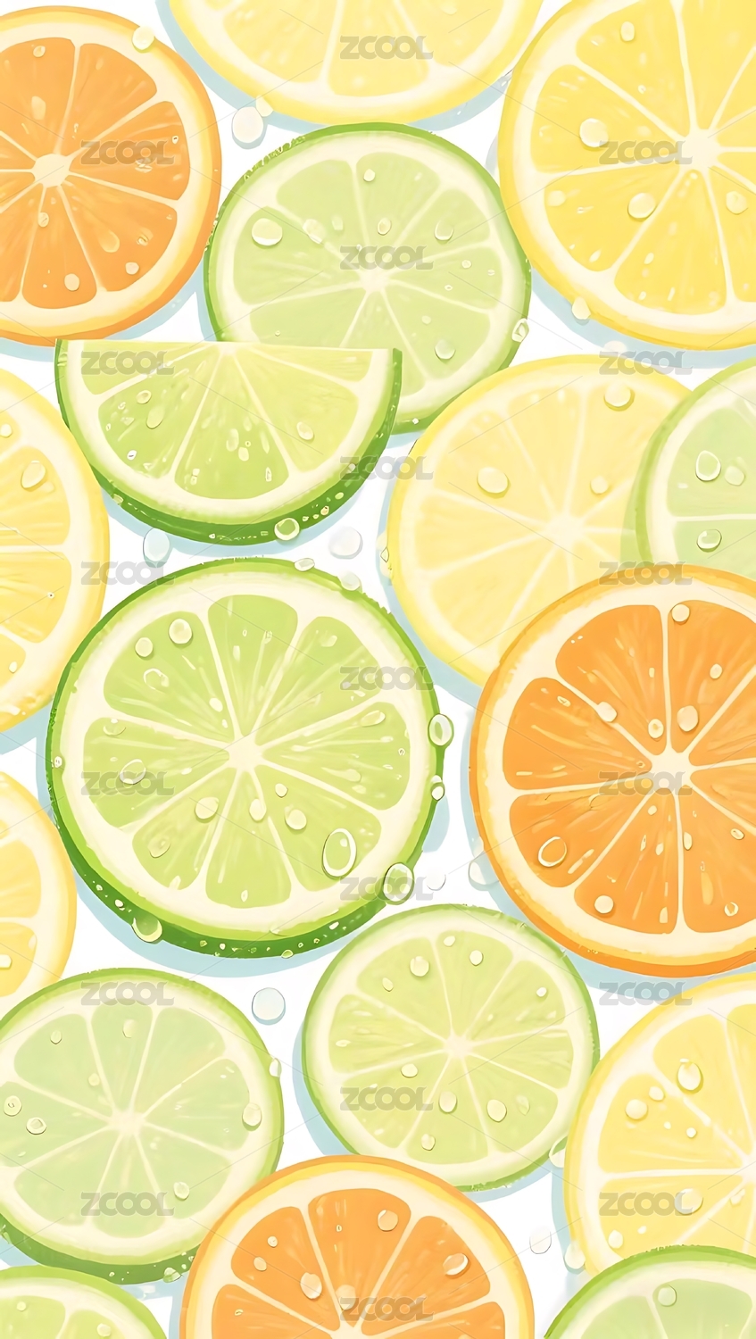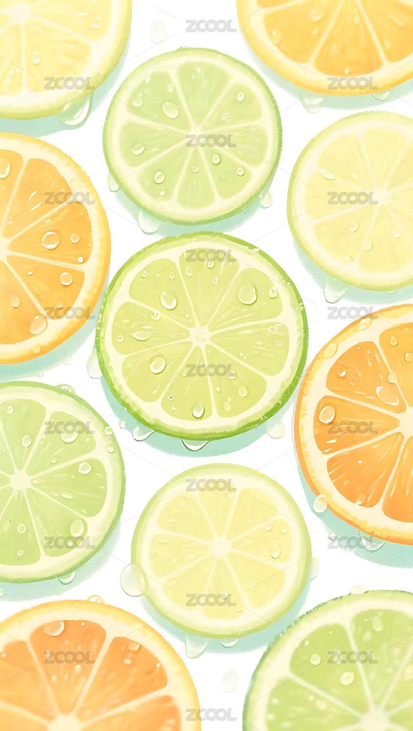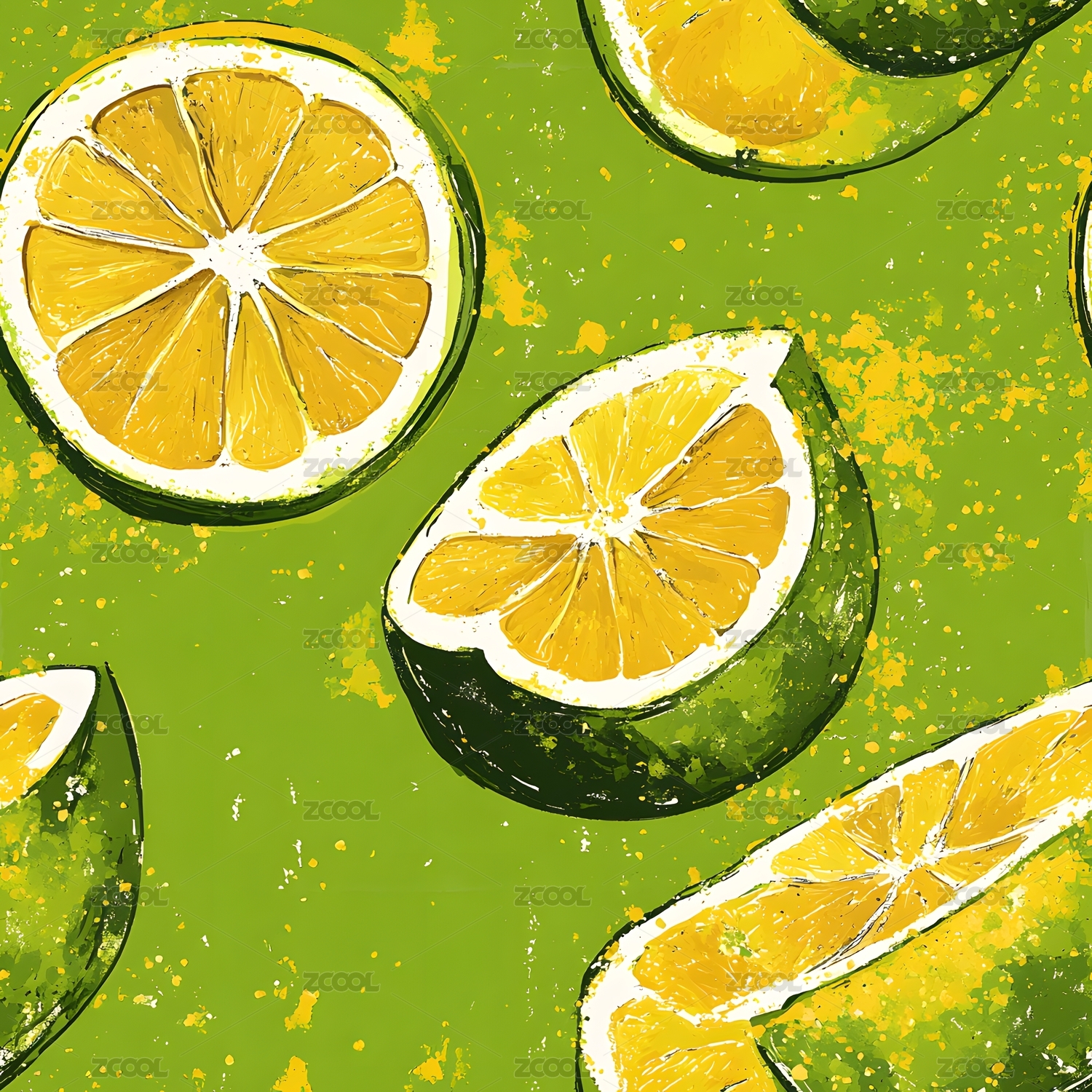 绿色背景黄柠檬青柠檬切片卡通手绘矢量海报